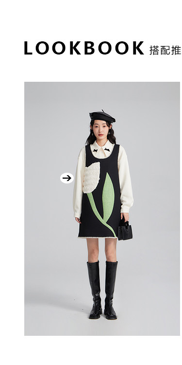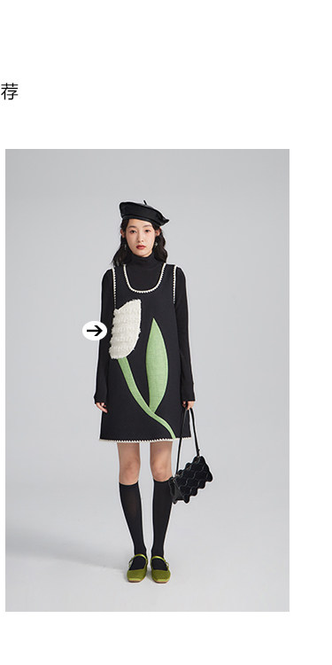 Ear uare Original Niche Design Tulip Artistic Knitted Vest Sweater dress Mid-length