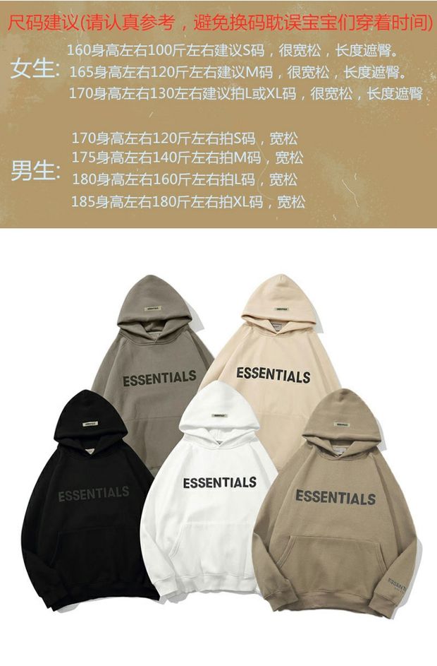 Essentials Stereo Alphabet Print fleece-lined Hooded Sweatshirt FOG Male and Female Teenagers Street Hip Hop Jacket