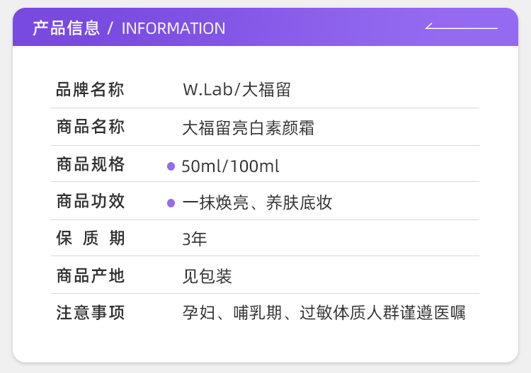[Tmall Signature] wlab Dafu Leave Brightening White Plain Cream Refreshing Waterproof Sweat Resistant Brightening Base Makeup Front Base Makeup