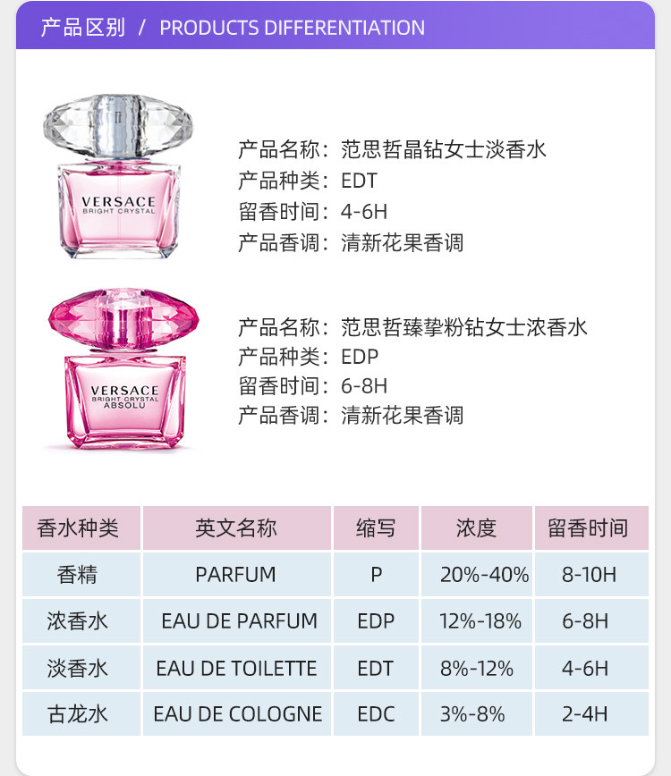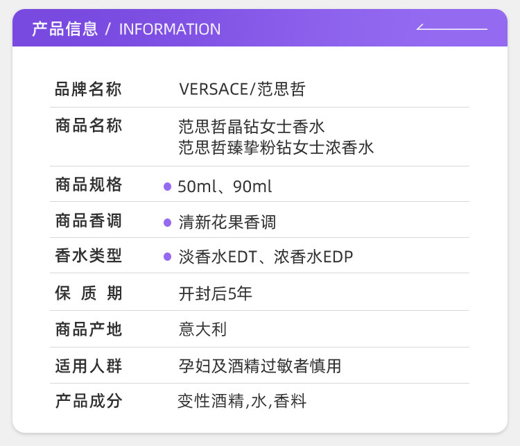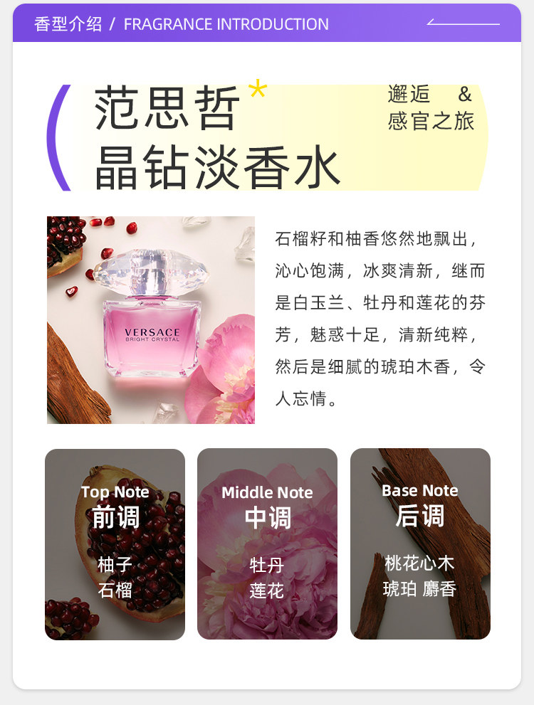 [Tmall Signature] Li Xian recommend VERSACE Versace Crystal Diamond Powder Diamond 50/90ml Lady Perfumed Flower Fruit Fragrance