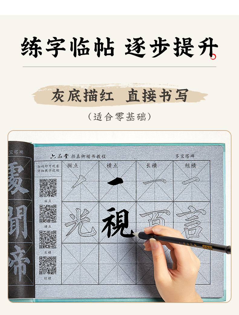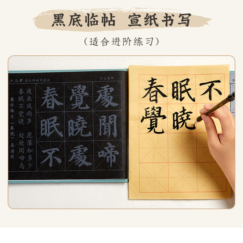 Brush Copybook Water Writing Cloth suit Beginners Practice Calligraphy Regular Script Introduction Copy Yan Zhenqing Duobao Pagoda Stele Pupils Children's Writing Paper Special Ten Thousand Times Water Writing Calligraphy Cloth Four Treasures of the Study