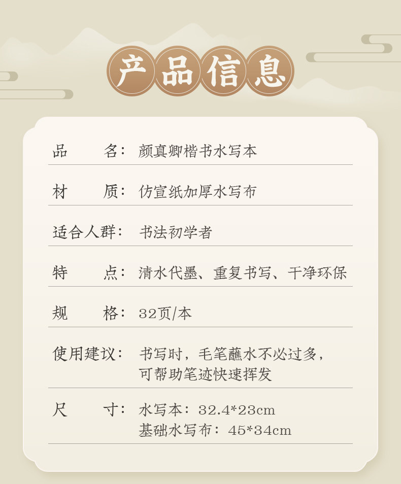 基础8件套装【高性价比-颜体】 入门4件套【入门款-颜体】 趣味控笔3件套 水写布-颜体初学者10件套 豪华16件套【毛笔更优质-颜体】 。