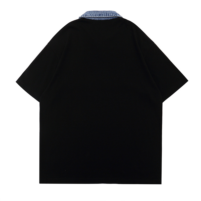 TKPA summer new ins American style high street Denim lapel polo shirt men and women fashion brand embroidered loose short sleeve T-shirt