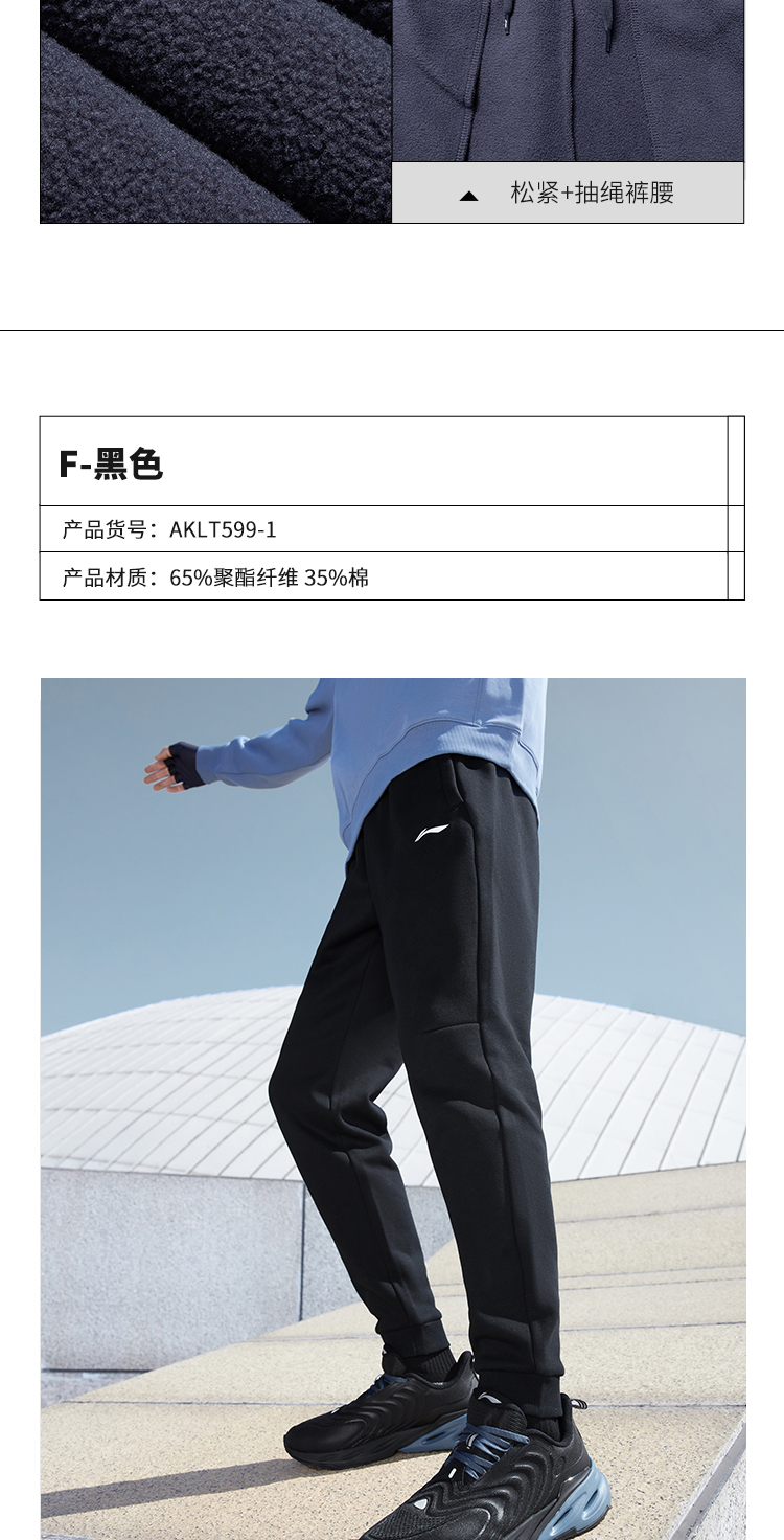 Li Ning plus velvet pants | men's autumn and winter fitness men's pants knitted pants casual straight running pants