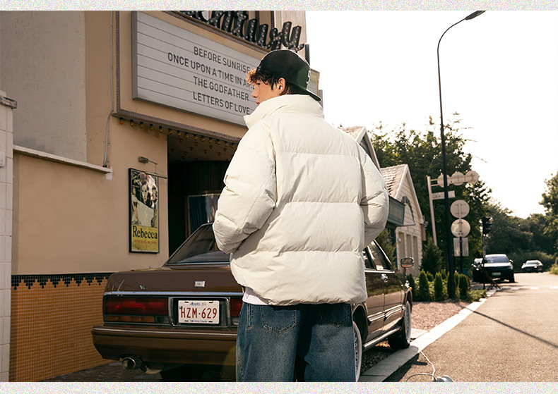 90 velvet American stand collar down jacket winter new couple thickened white duck down bread clothing tide brand embroidered coat q