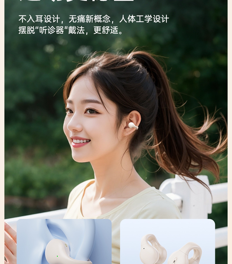 2024 New Ear Clip Headset No Leakage Wireless No Ear Long Endurance Noise Reduction Second Connection Bluetooth Headset