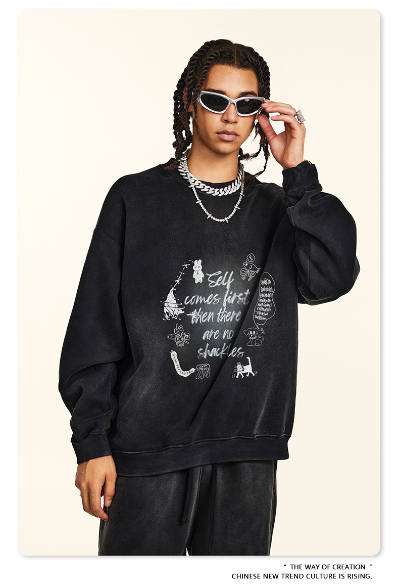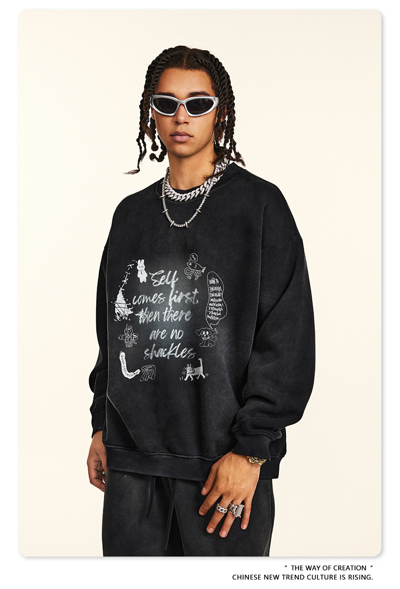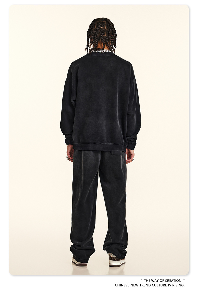 BE Men's Wear | Autumn 2024 American High Street Dark Style Jacket Retro Loose Fashion Brand fleece-lined Crewneck Wei Yi Men