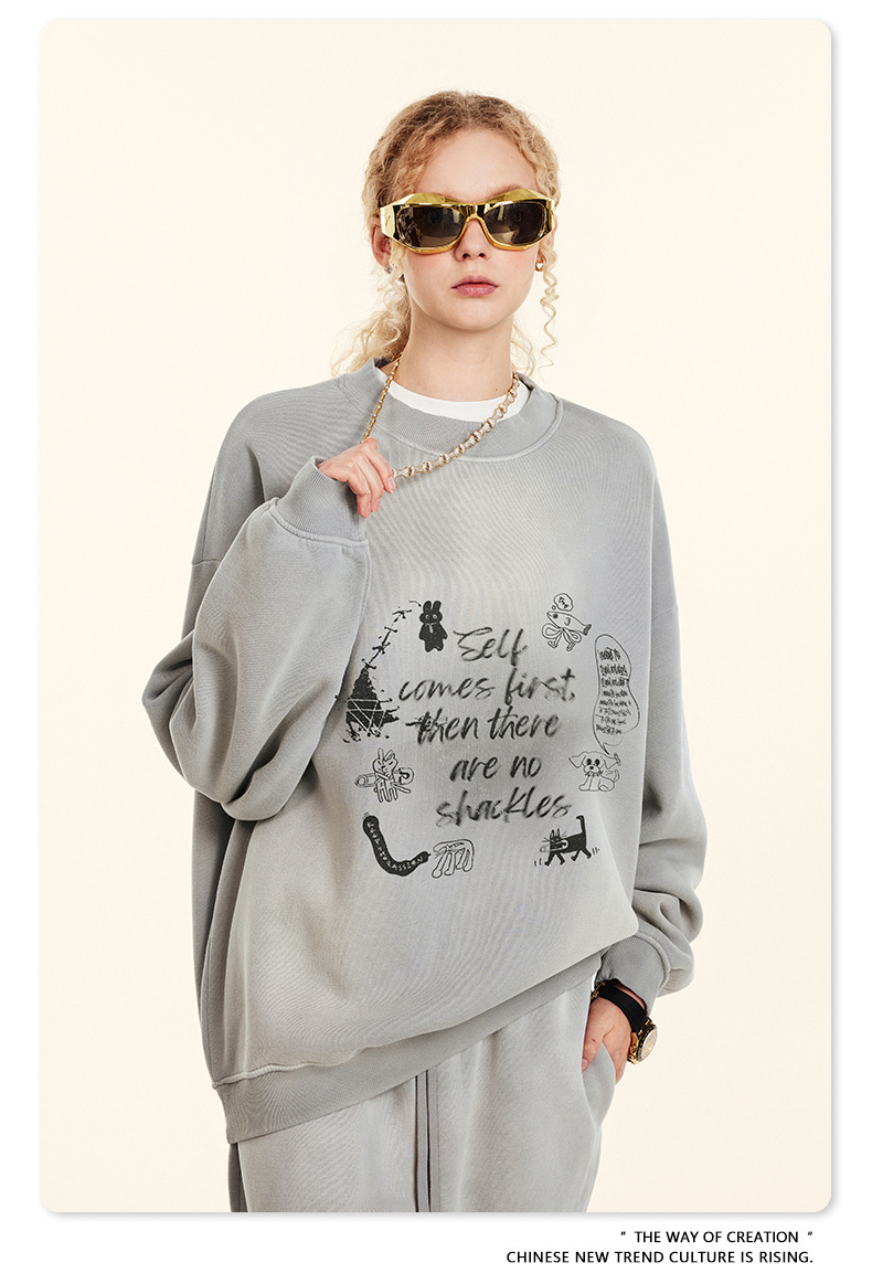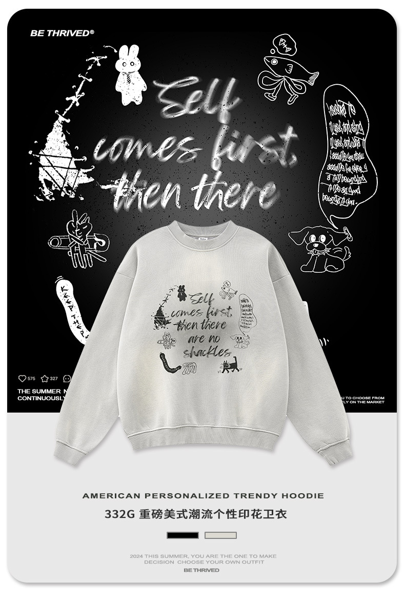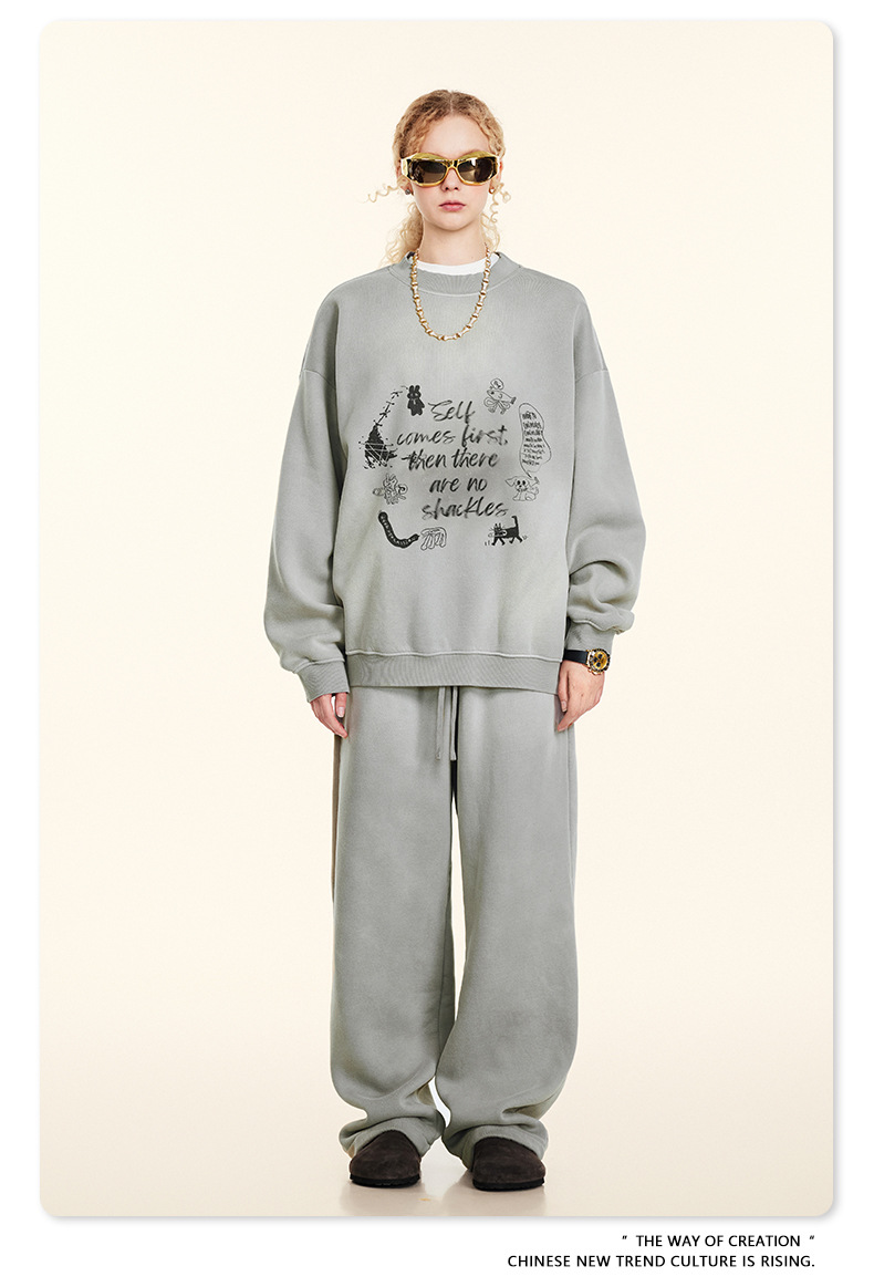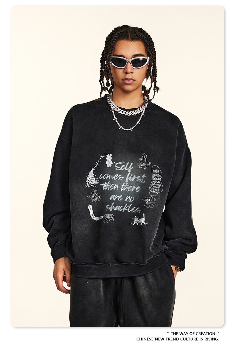 BE Men's Wear | Autumn 2024 American High Street Dark Style Jacket Retro Loose Fashion Brand fleece-lined Crewneck Wei Yi Men