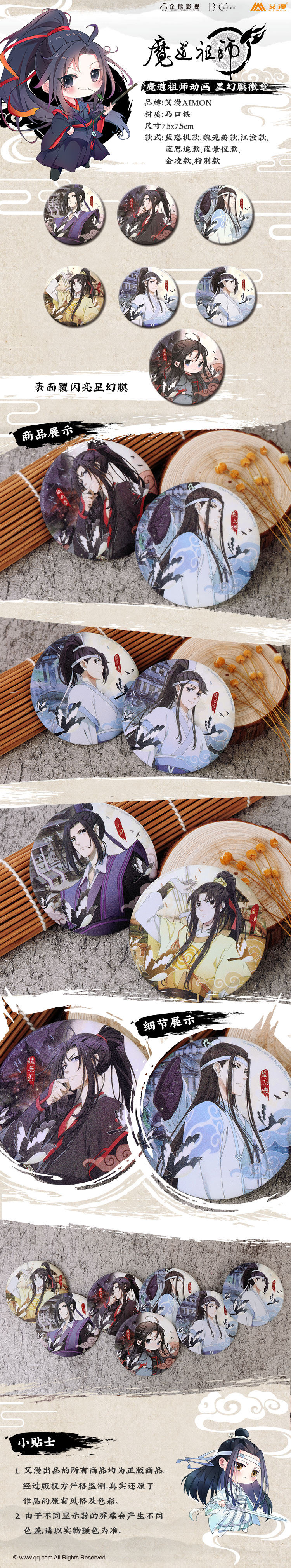 Genuine Star Magic Film Badge of Patriarch Wei Wuxian Blue Forgot Machine Thinking Chasing Jin Ling Jiangcheng Animation Cartoon