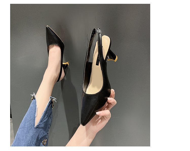 2023 Spring and Summer New Pointed High Heels Women's Stiletto Heel Baotou Sandals Rear Empty Shallow Mouth Single-layer Shoes for Women
