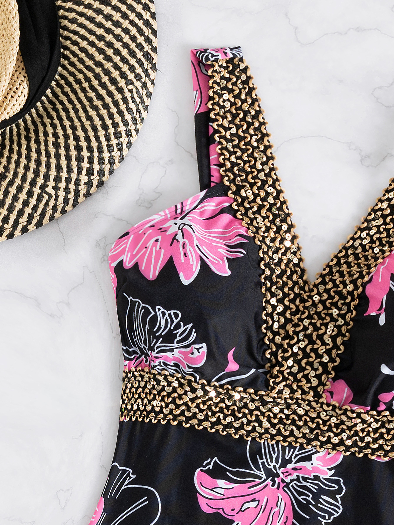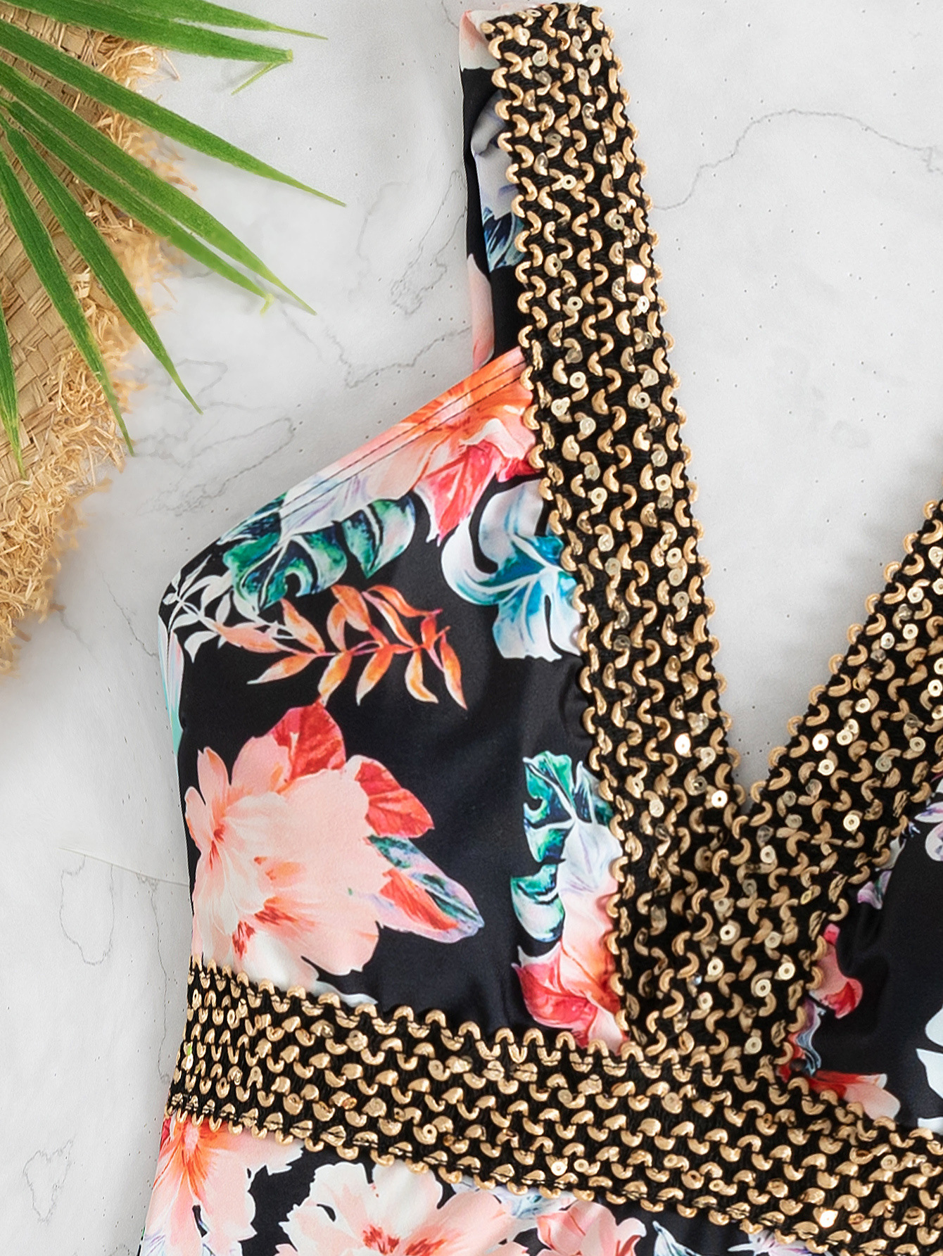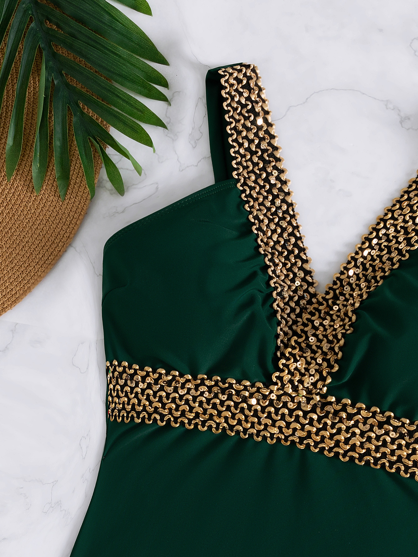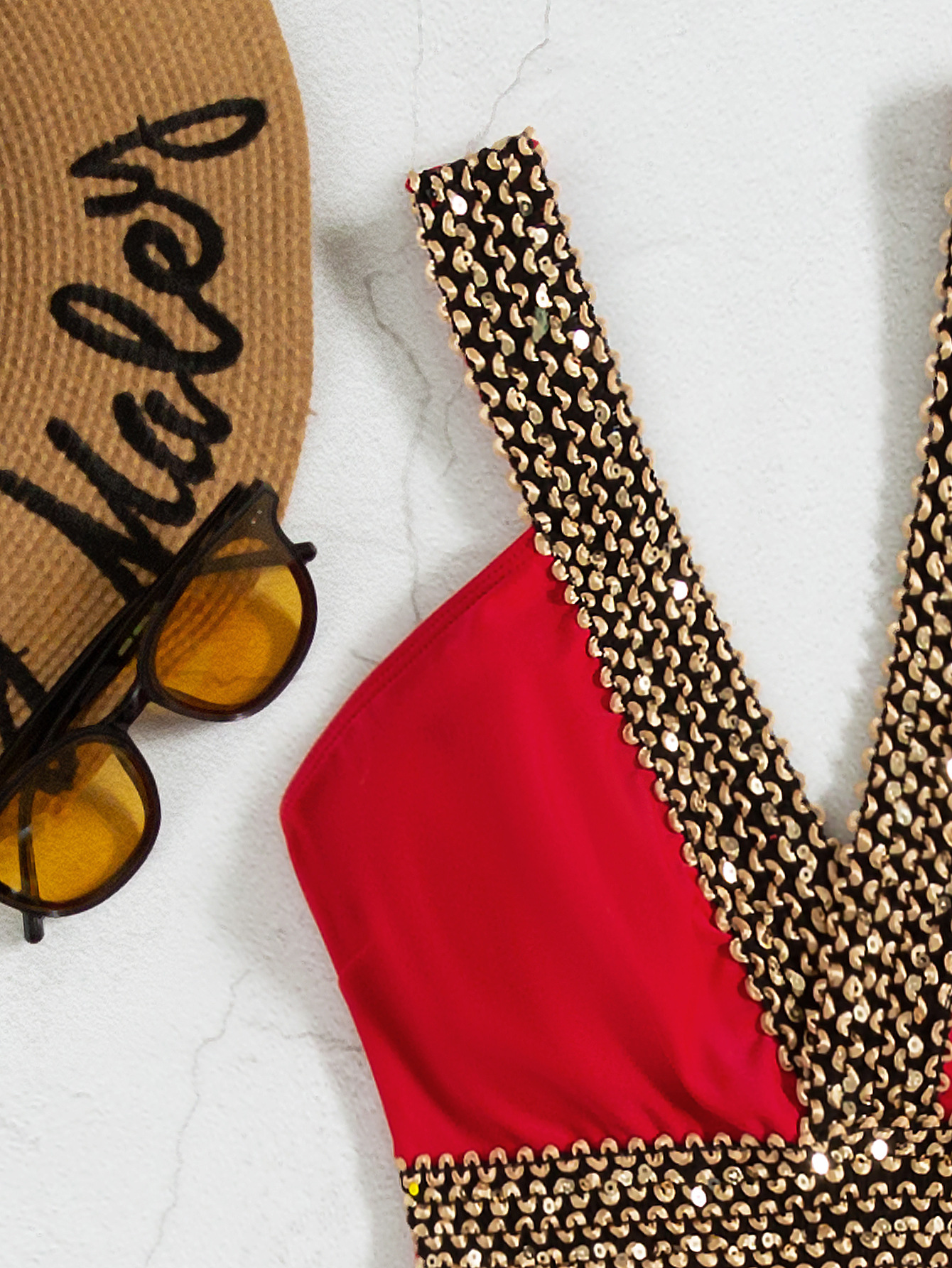 2024 Europe and the United States new fashion cross-border sexy deep V backless solid color plate with characteristics of flat angle one-piece swimsuit women