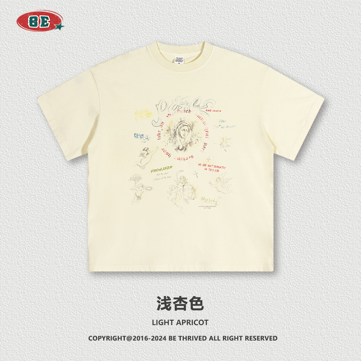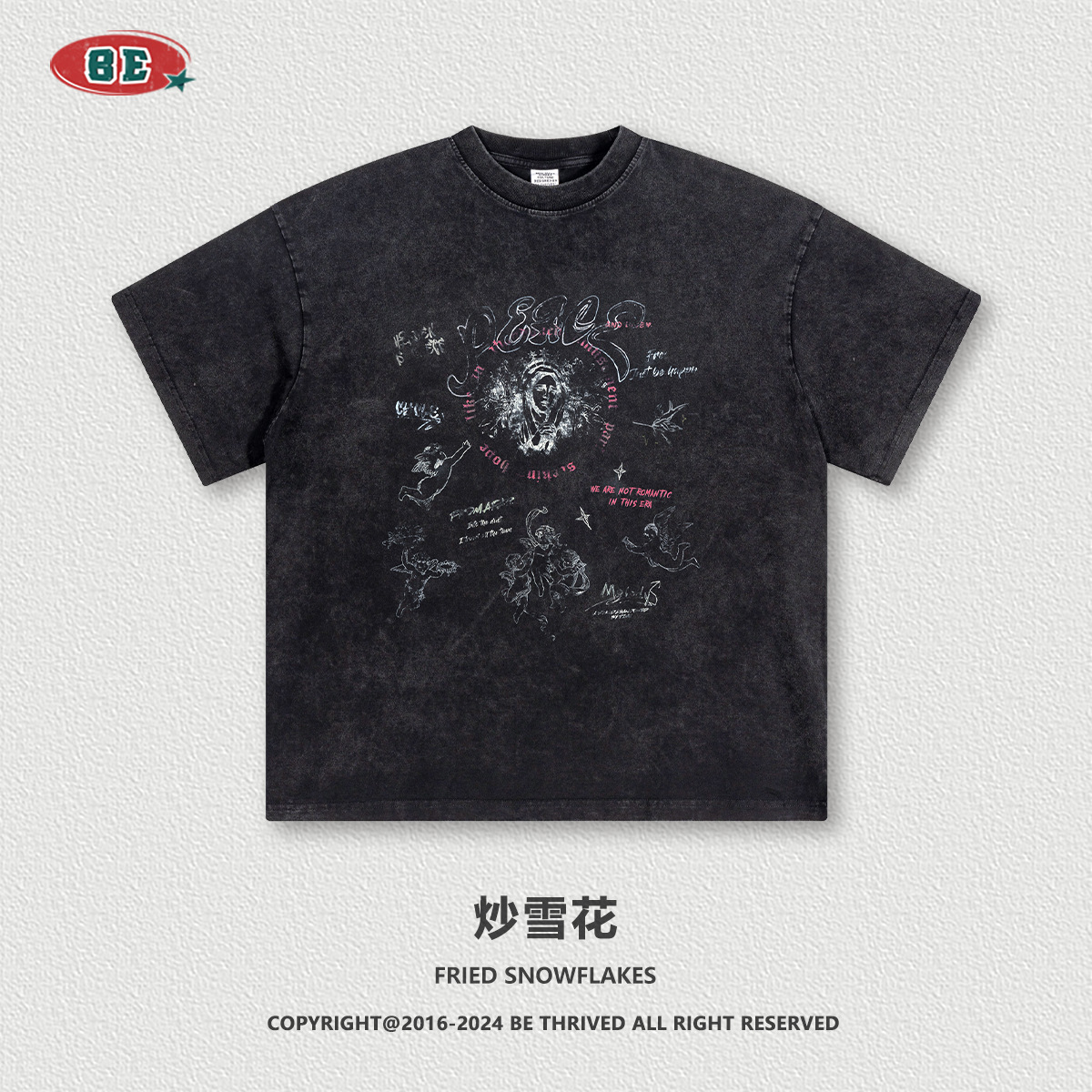 BE Men's | Spring/Summer 2024 Retro Washed Angel Printing Crewneck Short Sleeve Vintage Street Tide Brand T-shirt Men