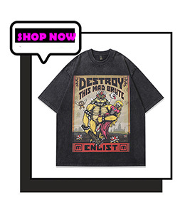 TKPA American Hip Hop West Coast Cartoon Printed Washed Old Half Sleeve T-Shirt for Men and Women Retro Fashion Brand Dark Short Sleeve T-Shirt