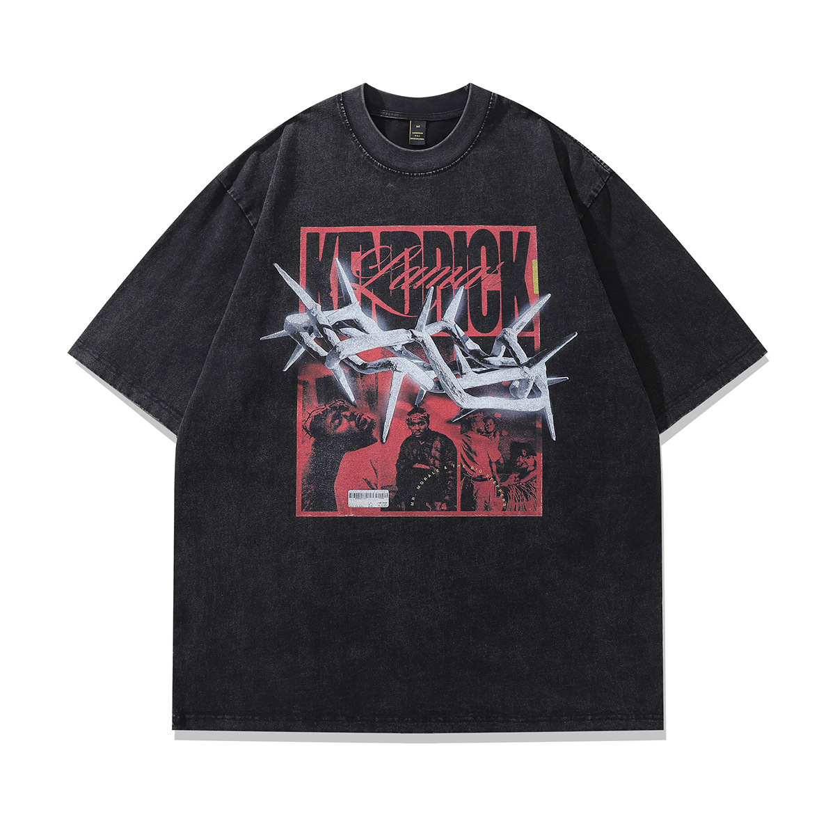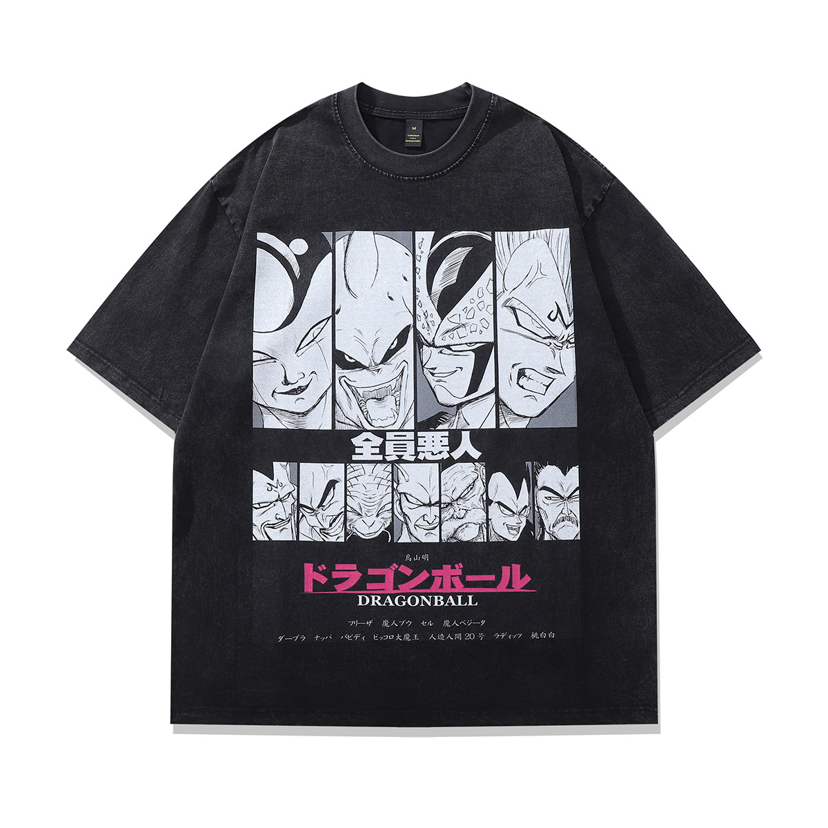 TKPA Japanese Cartoon Printed hiphop Heavy Washed Old Short-sleeved T-shirt Men's and Women's Hip-hop Retro Half-sleeved tee