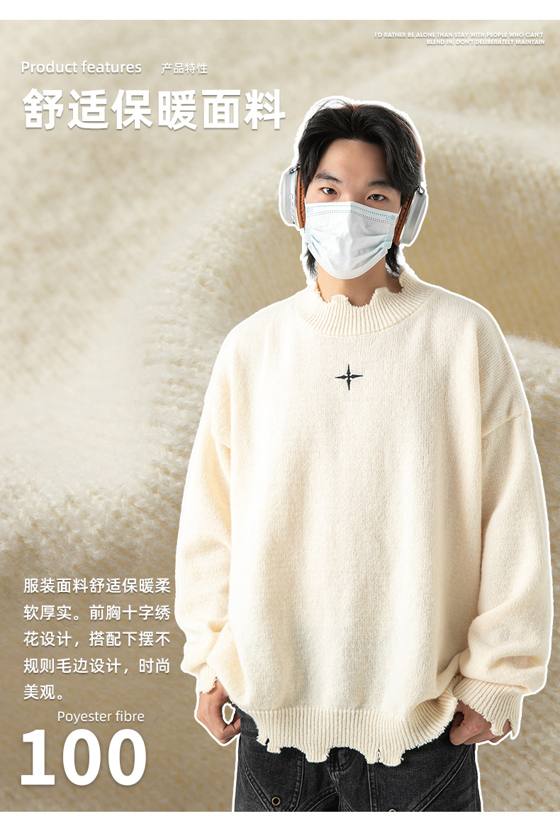 Irregular Destruction Sweater Men's Same Style Autumn and Winter New Fashion Brand Embroidered Couple's Knitted Sweater Jacket Q