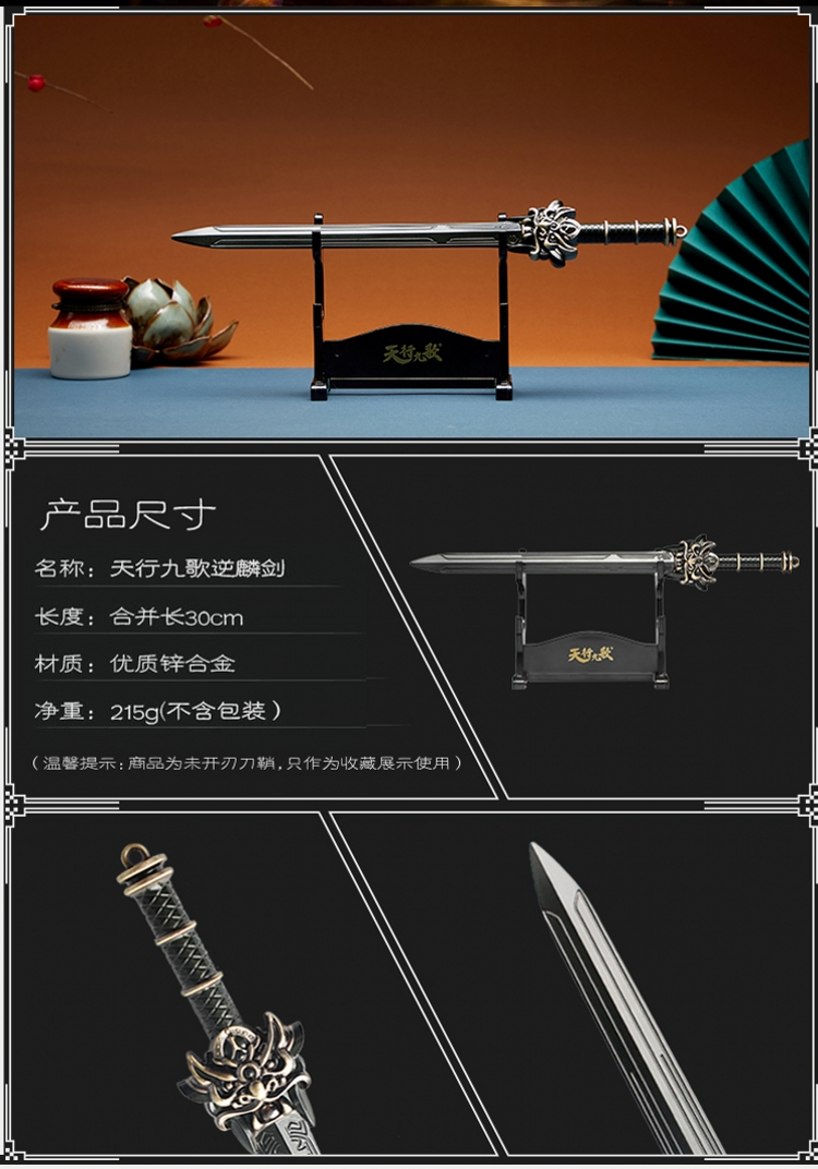 Genuine Qin Mingyue 30cm Soldier Weapon Model Sword Scales Shark Tooth Yuanhong Black and White Xuanjian Tianxing Jiuge Surrounding