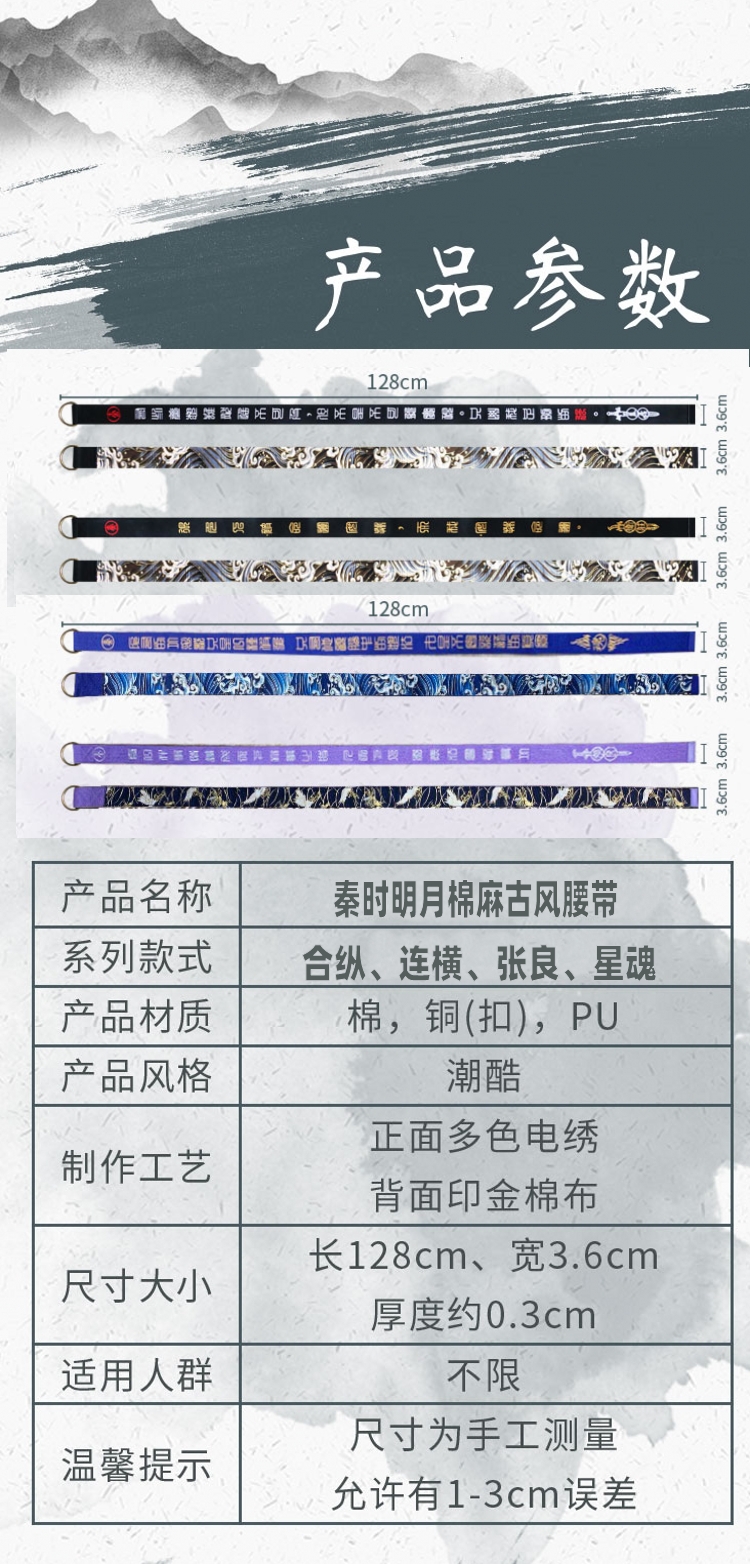 Genuine Qin Dynasty Moon Ghost Valley Zongwei Zhuang Gai Nie Xinghun Zhang Liang Cotton Linen Belt Tianxing Nine Songs Animation Surrounding