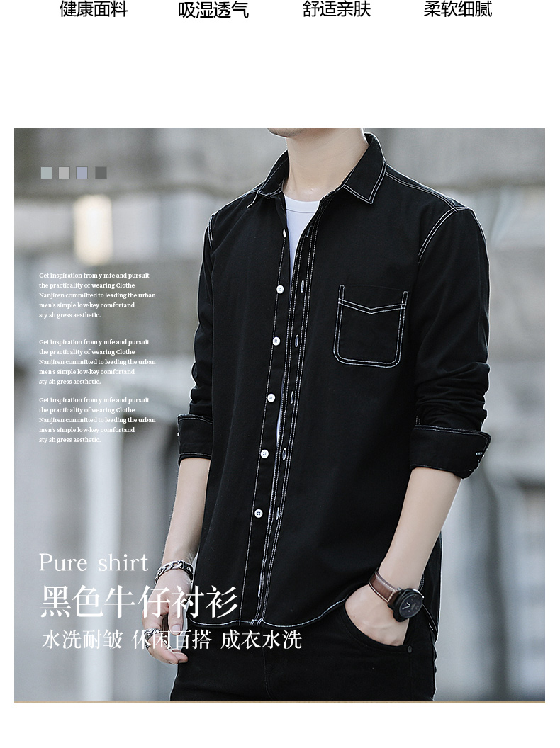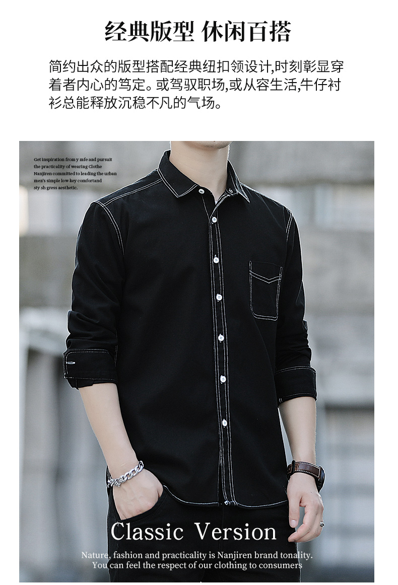 Dongyu men's shirt men's spring imitation denim shirt black cotton shirt tide casual shirt men's in stock wholesale
