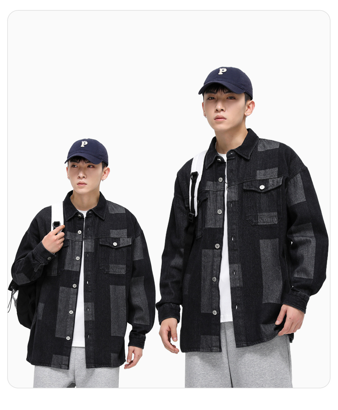 Dongyu Men's Spring Denim Shirt Men's Double Bag Plaid Casual Shirt Jacket Summer Men's All-match Korean Men