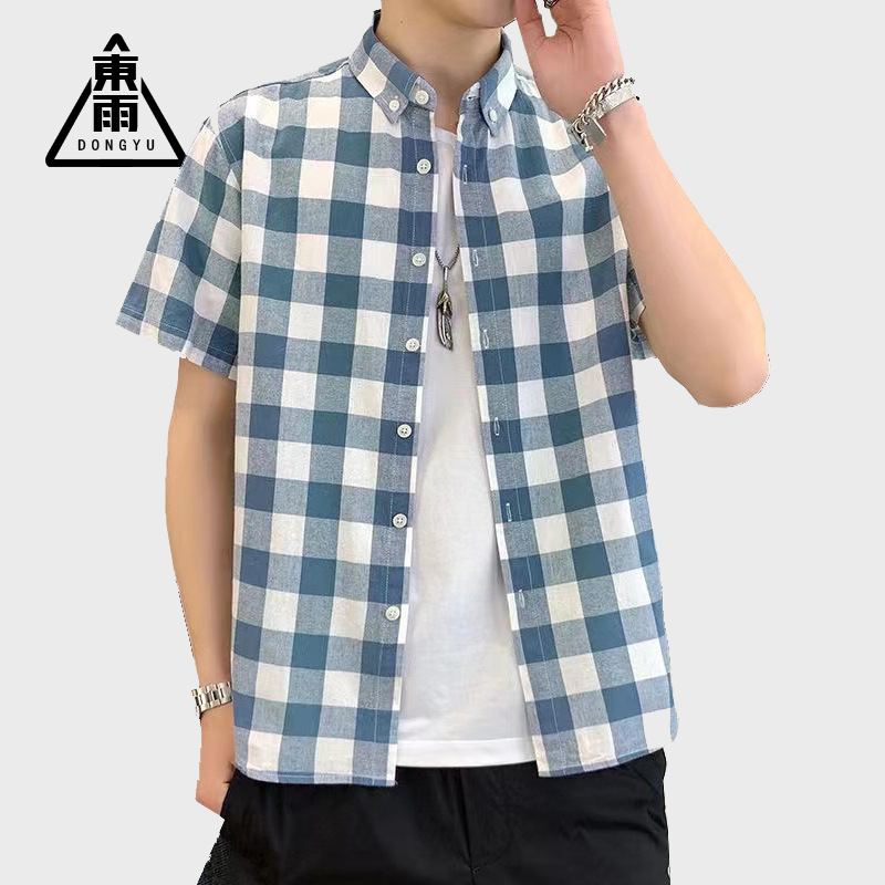 Dongyu Men's Shirt Summer Casual Short-sleeved Shirt Men's Plaid Casual Short-sleeved Shirt Fashionable in stock Wholesale
