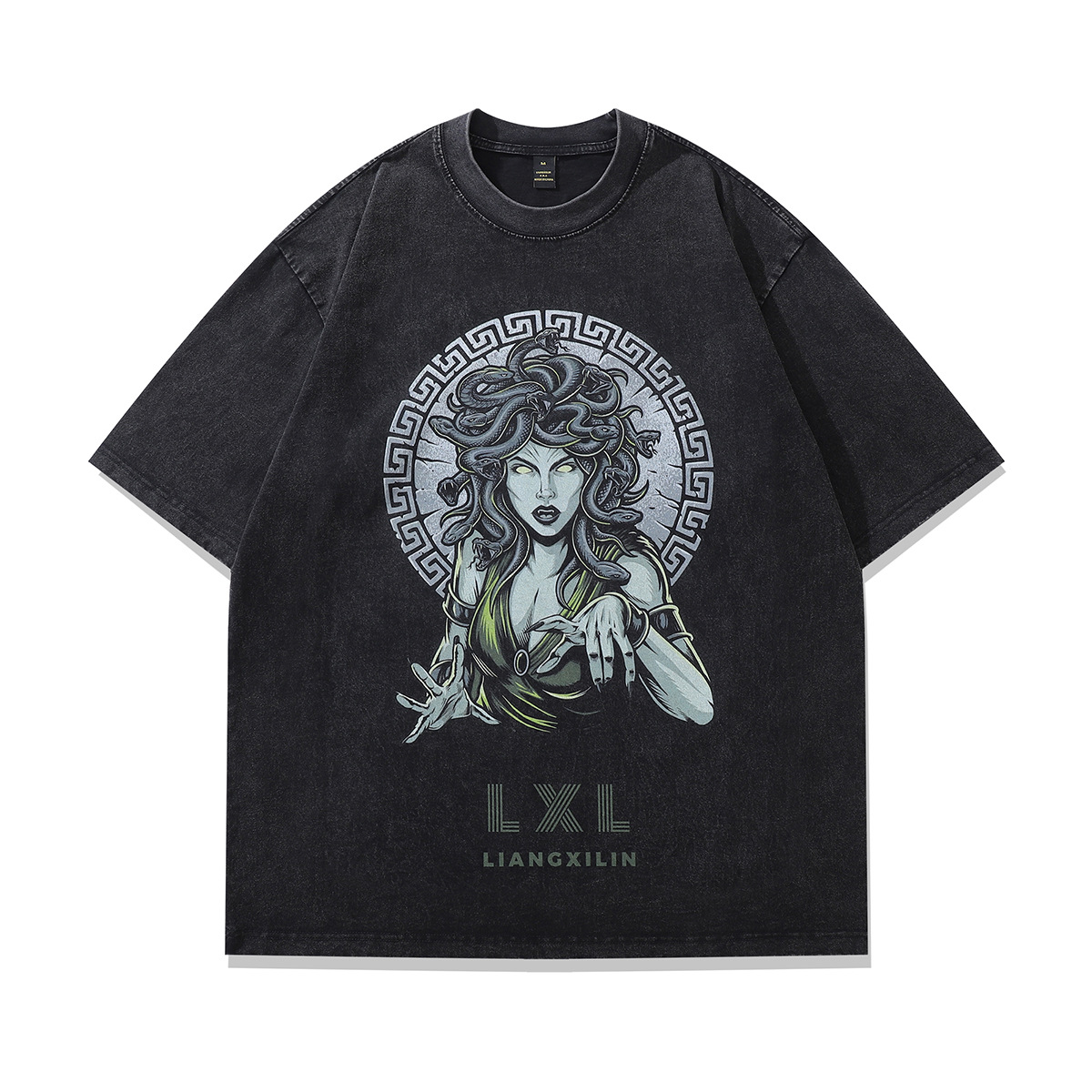 TKPA American High Street Doberman Dog Printed Washed Old Half Sleeve T-Shirt for Men and Women Street Fashion Brand Retro Short Sleeve tee