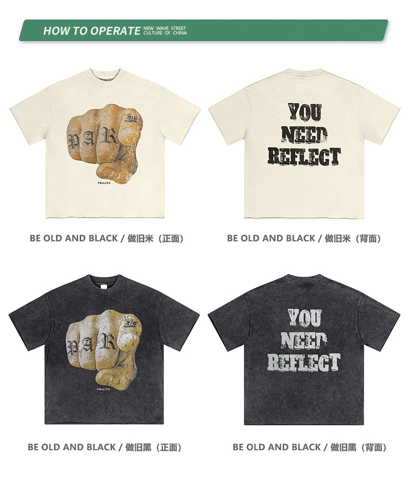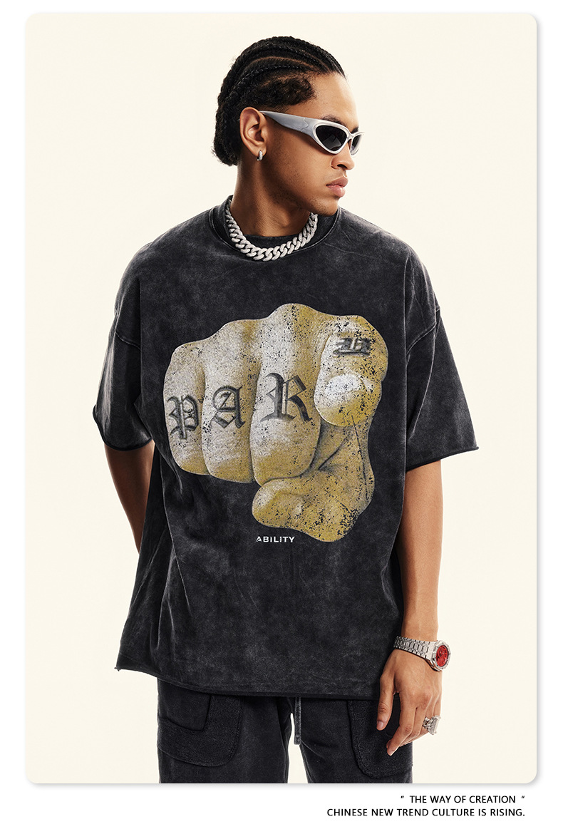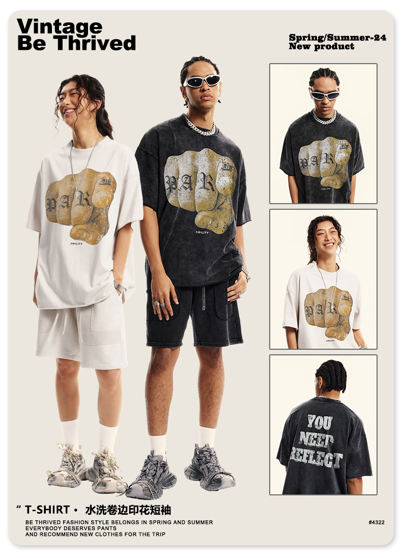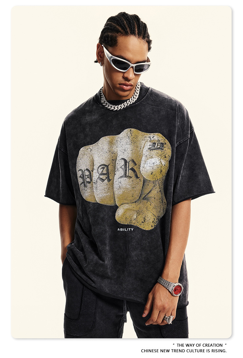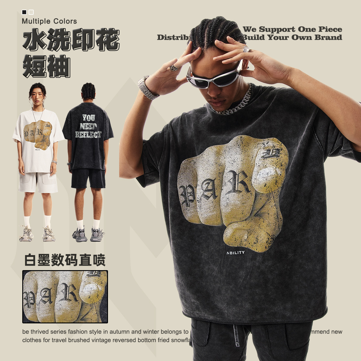 BE Men's Wear | Spring/Summer 2024 New 310g Heavy Washed Retro Printed Short Sleeve Men's High Street National Tide Loose T-shirt