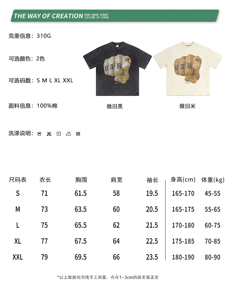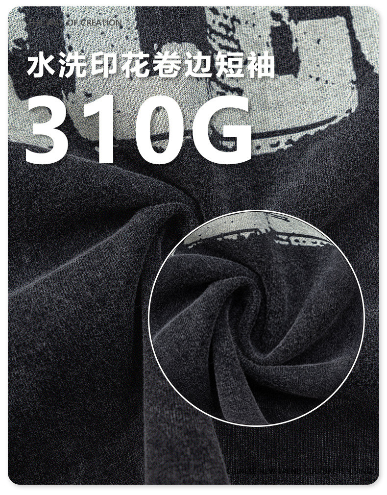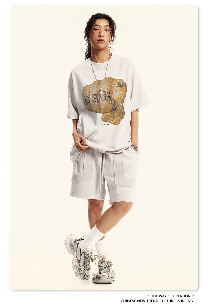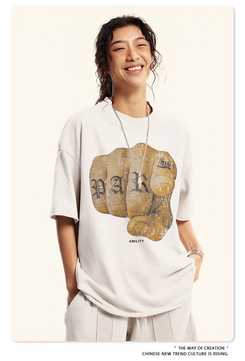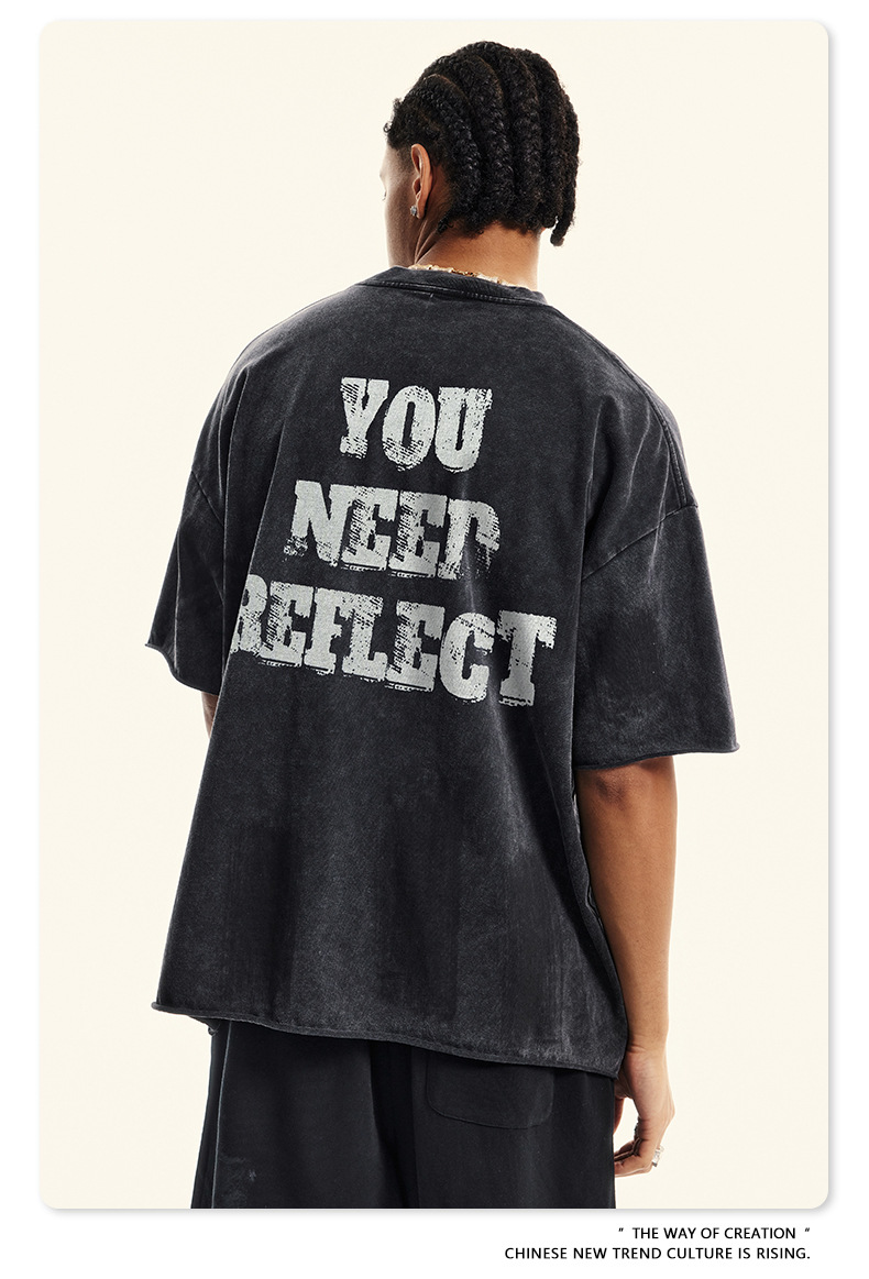 BE Men's Wear | Spring/Summer 2024 New 310g Heavy Washed Retro Printed Short Sleeve Men's High Street National Tide Loose T-shirt