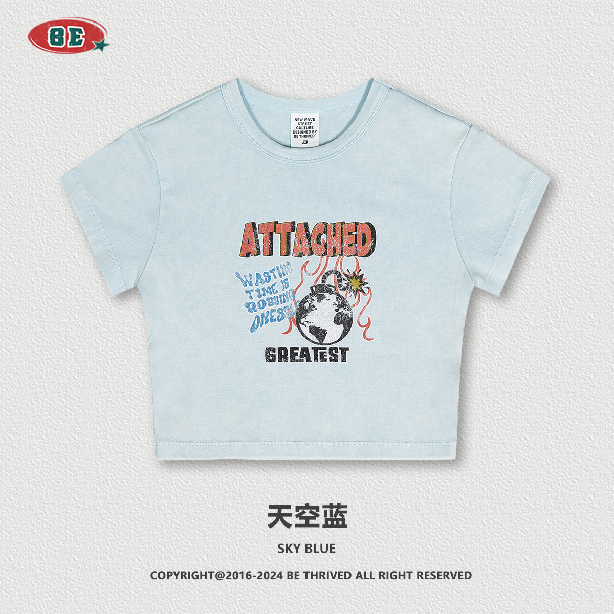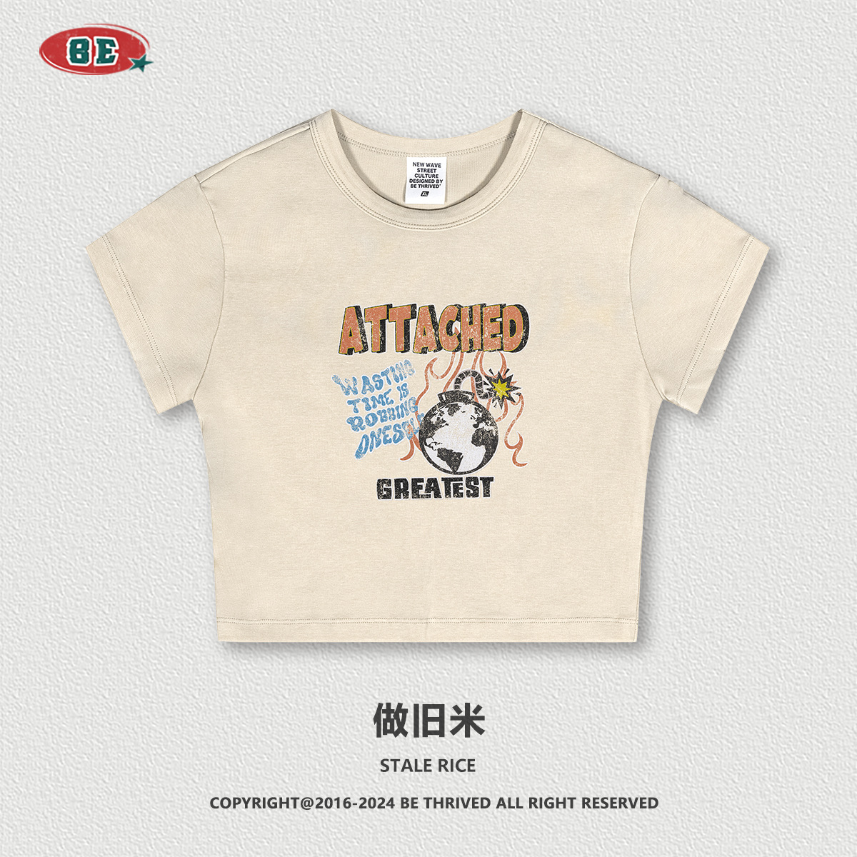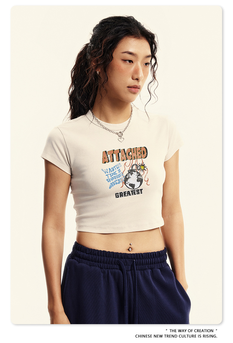 BE Women's Wear | American Retro Spice Girls Racing Women's Short-sleeved Slim-fit Slim-fit Version Navel-exposed Short Short-sleeved T-shirt Women
