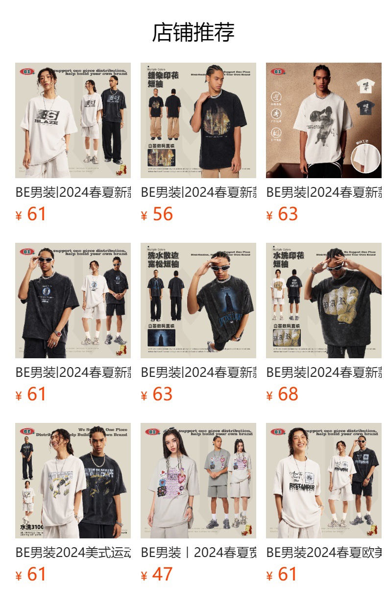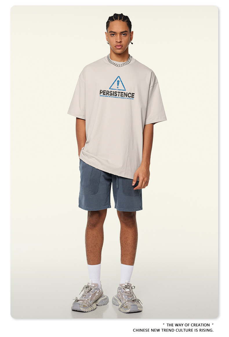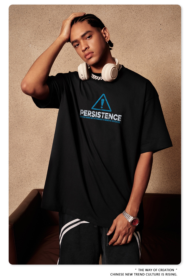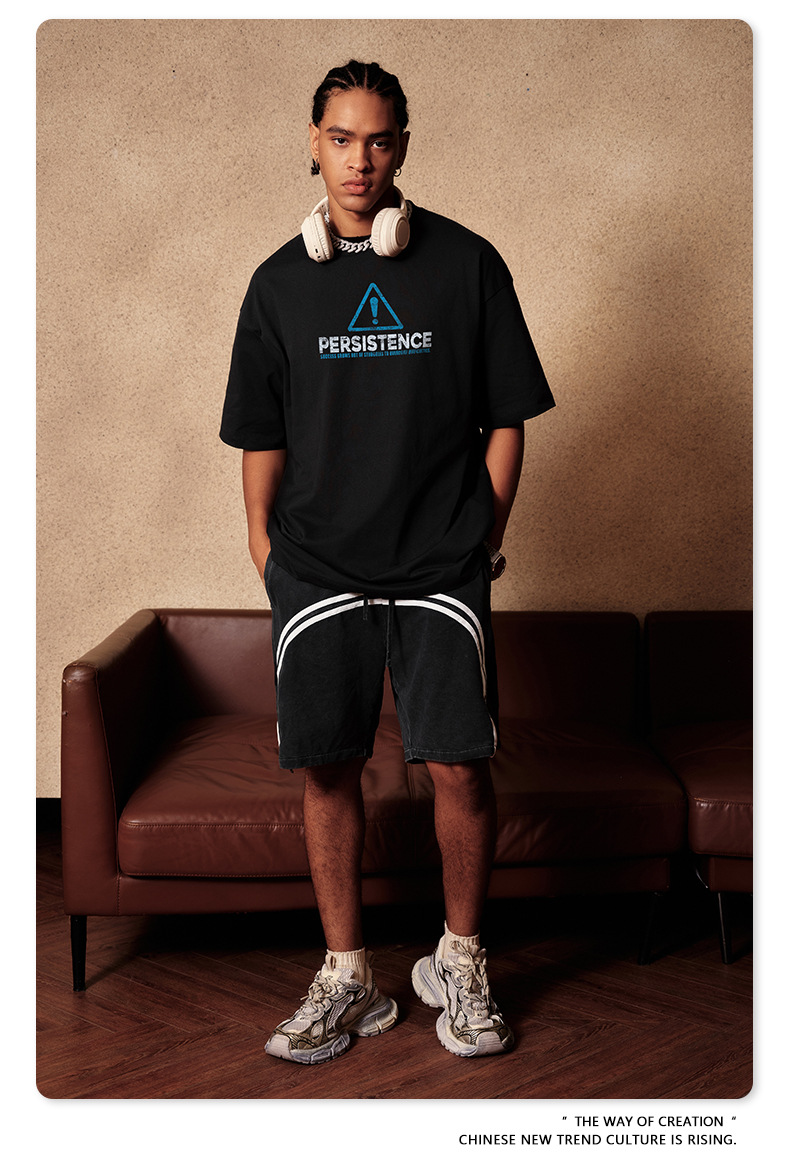 BE men's clothing | spring and summer 2024 new American retro loose small neckline tide brand printed men's washed t-shirt