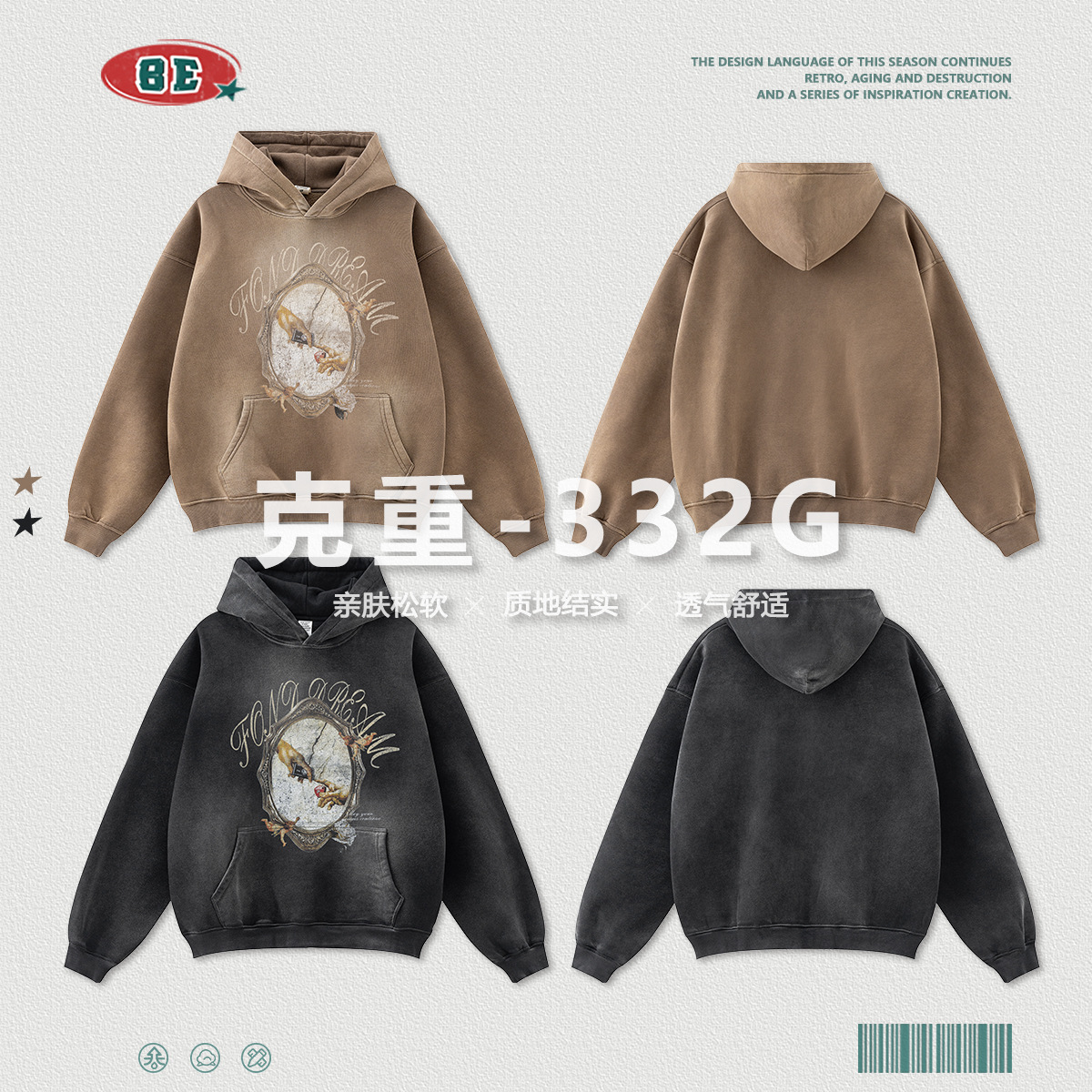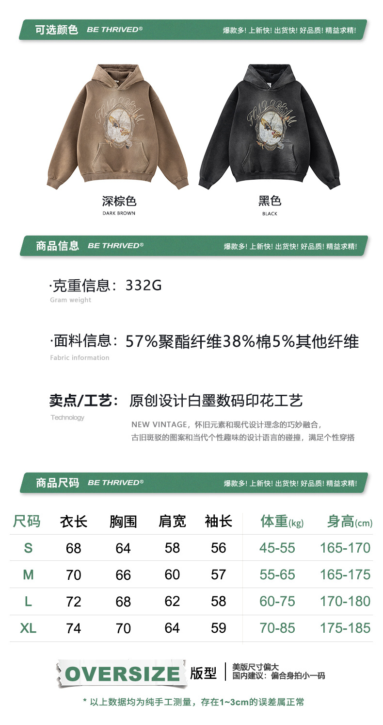 BE Men's Wear | 2024 Autumn fleece-lined Thickened American Tide Brand Original Washed Old Hooded Clothes for Men and Women