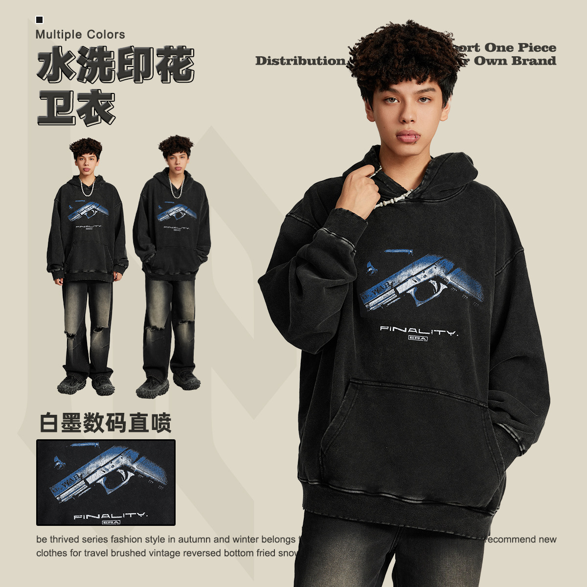 BE Men's Wear | 2024 Fall/Winter Heavy 420G Niche Design Sense Retro Do Old Waste Earth Wind Pullover Hooded Wei Yi