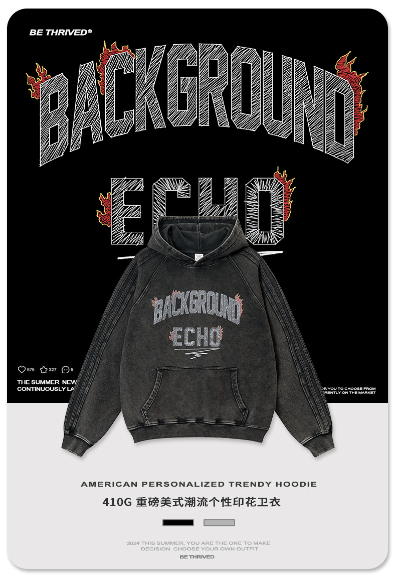 BE Men's Wear | 2024 Autumn American Fashion Brand Retro Printed Men's Wear Loose Sports Wind Round Pullover Top