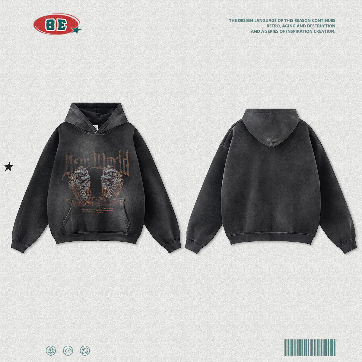 BE Men's Wear | 2024 Autumn Retro Heavy National Tide Lion Wake Hooded Wei Yi Tide Brand vintage Youth Hoodie