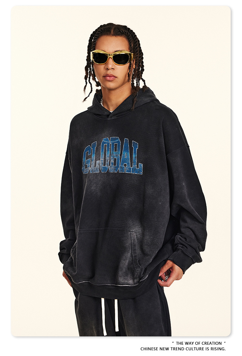 BE Men's Wear | Autumn 2024 American Retro Gradual Change Letter Loose Hoodie Men's oversize Heavy Wear