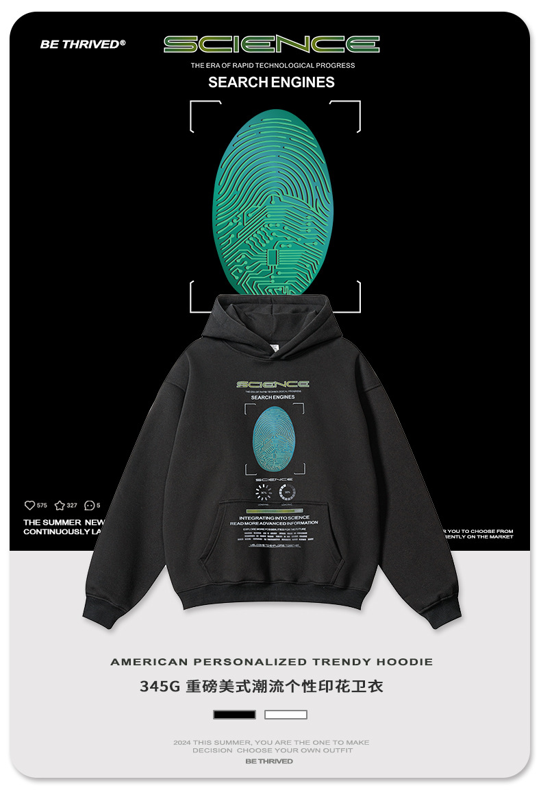 BE Men's 2024 Fall/Winter American Street Loose Sports Hoodie fleece-lined Hoodie Fashion Zhongshan Hoodie