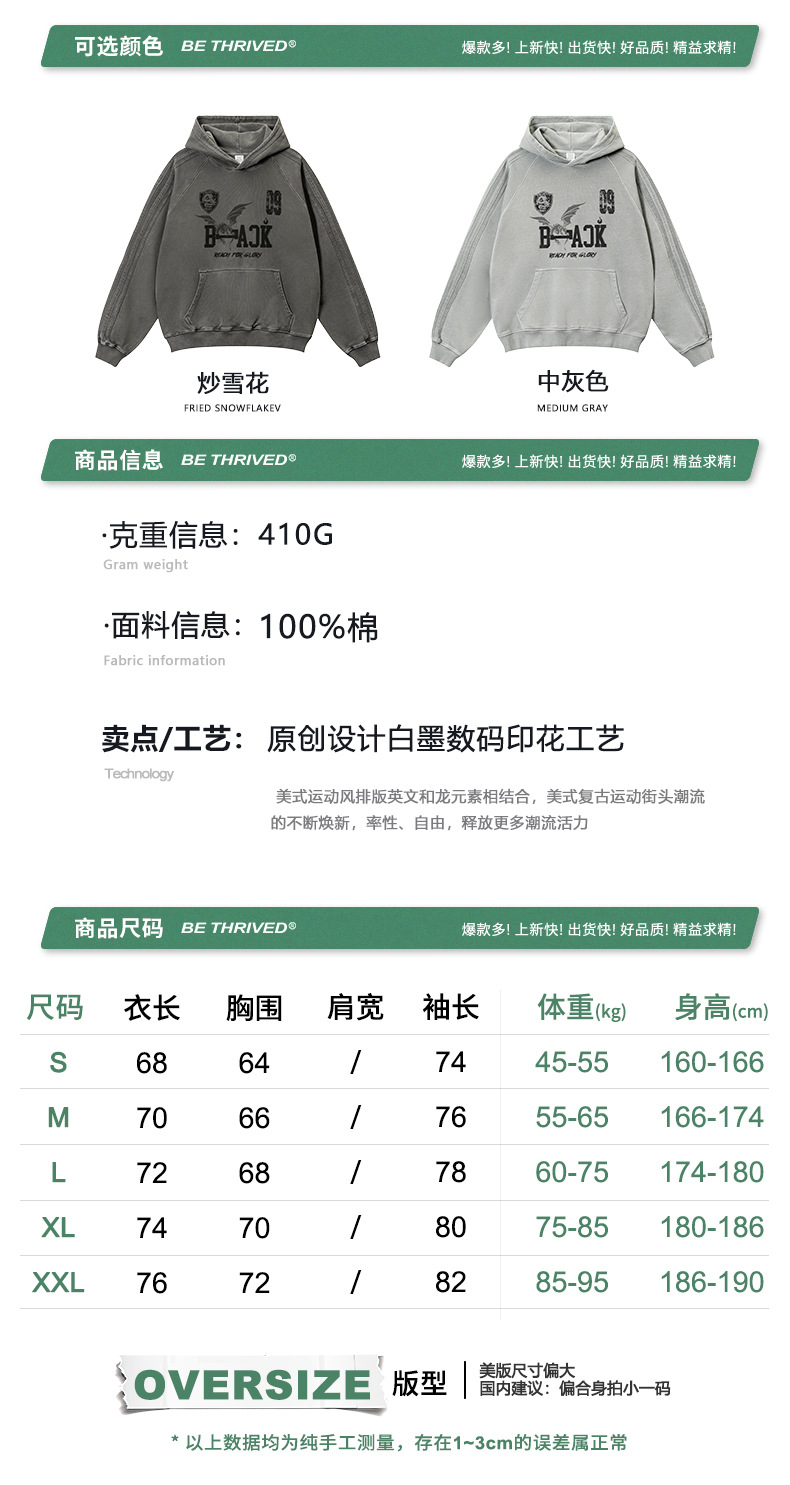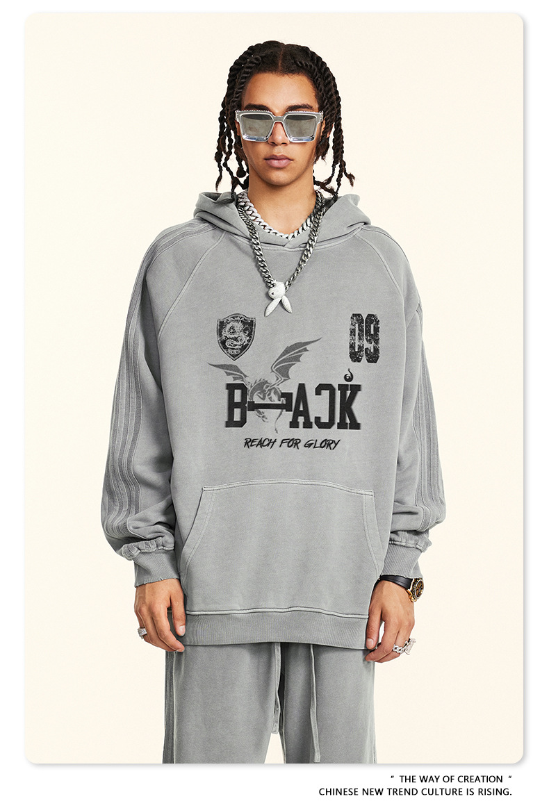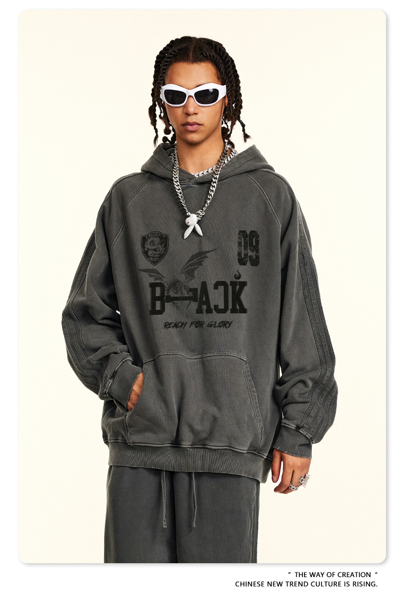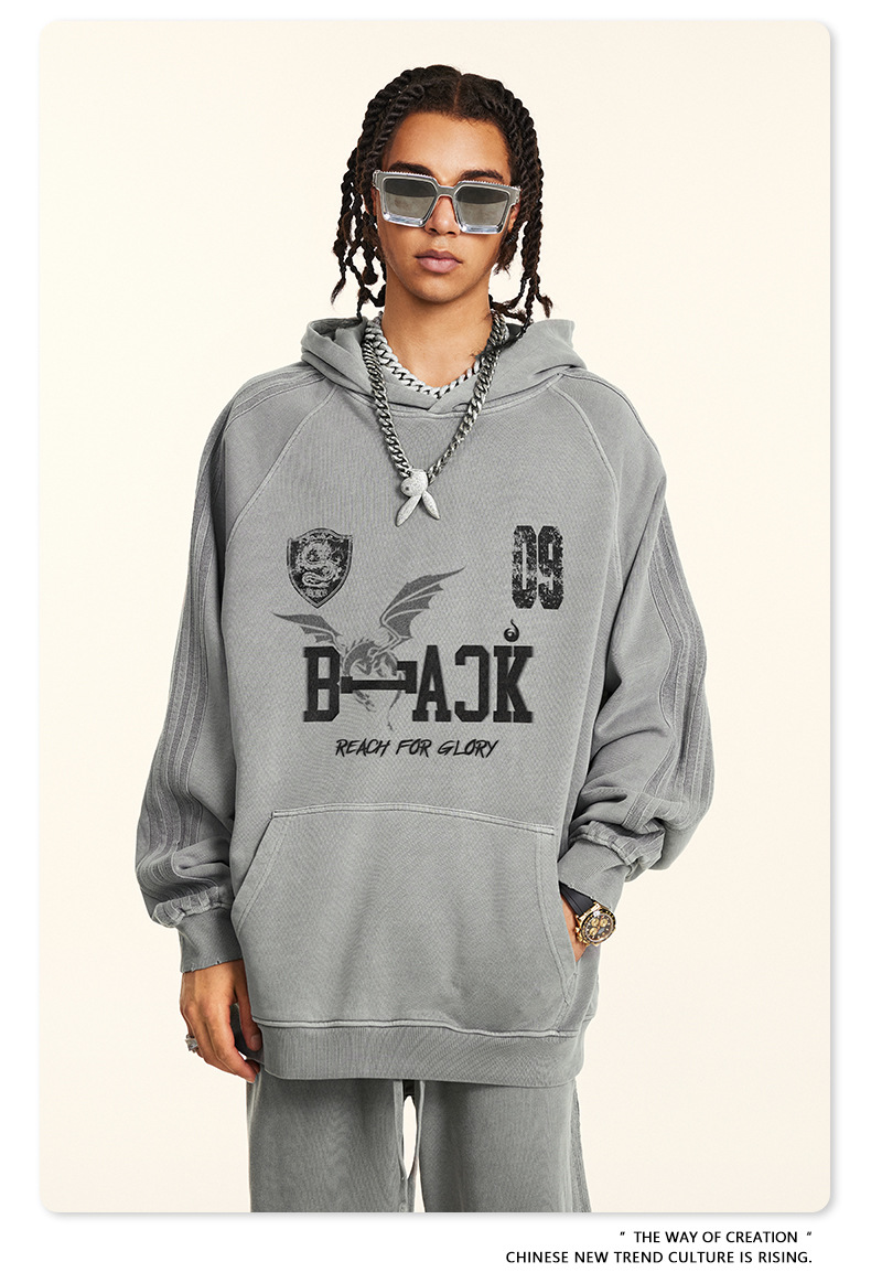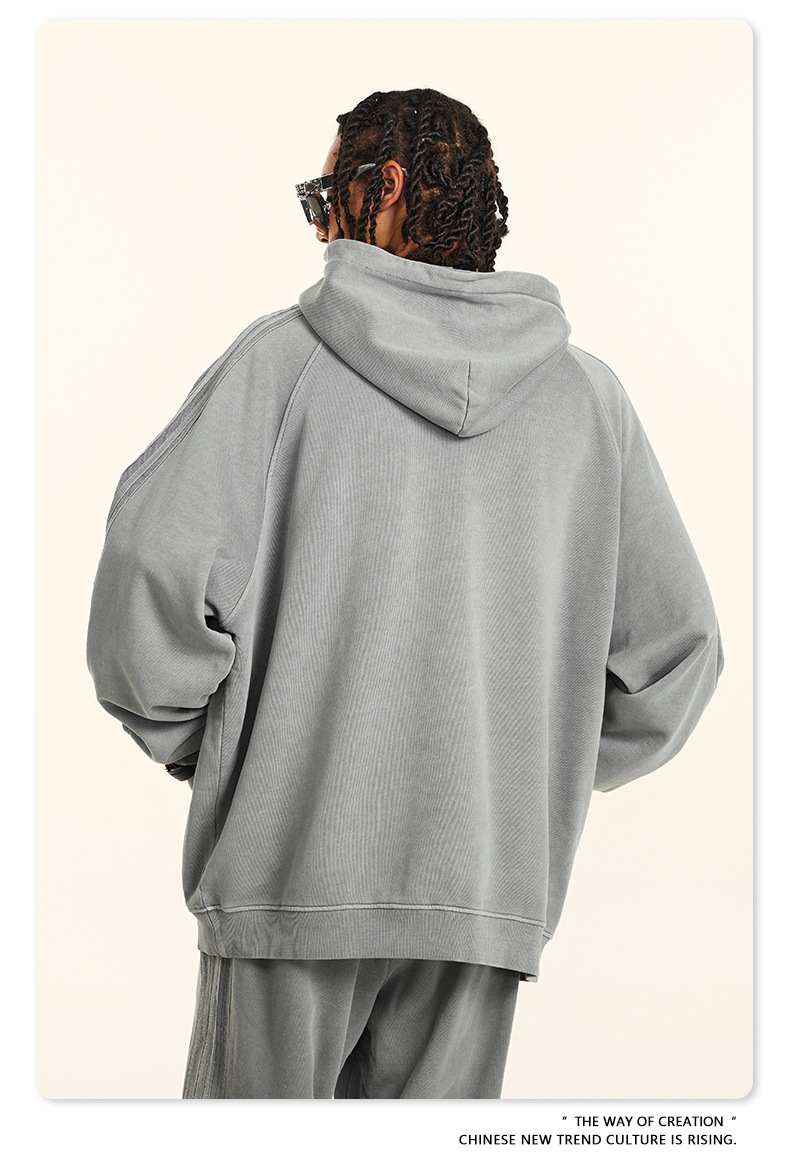 BE Men's Wear | Autumn 2024 American Retro Washed terry Hooded Wear Men's Loose Grey High-end Sense Jacket