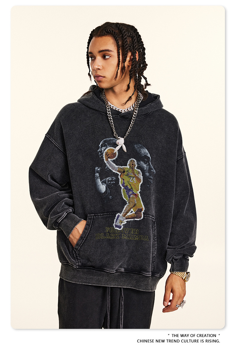 BE Men's Wear 2024 Autumn American Retro Digital Direct Injection No.24 Star Basketball Wear Men's Hooded Sweatshirt