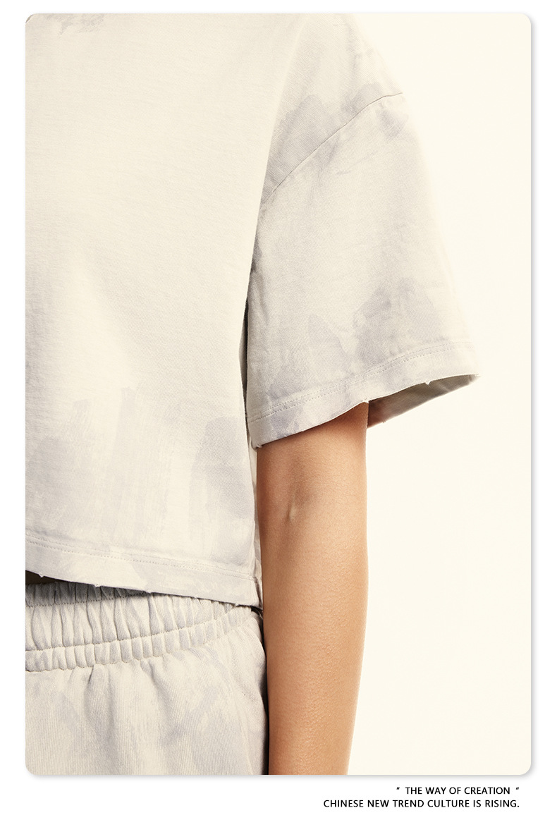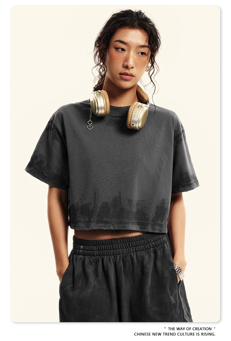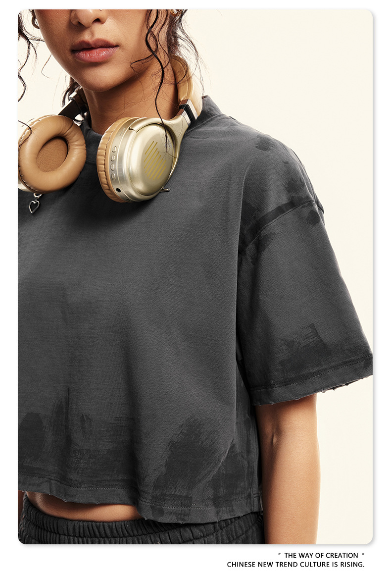 BE Women's Wear 24 Spring and Summer Paris Factory Mud Dye Women's T-shirt 305G European and American Fashion Brand Fitness Short Women's Top
