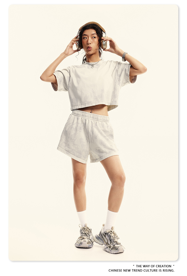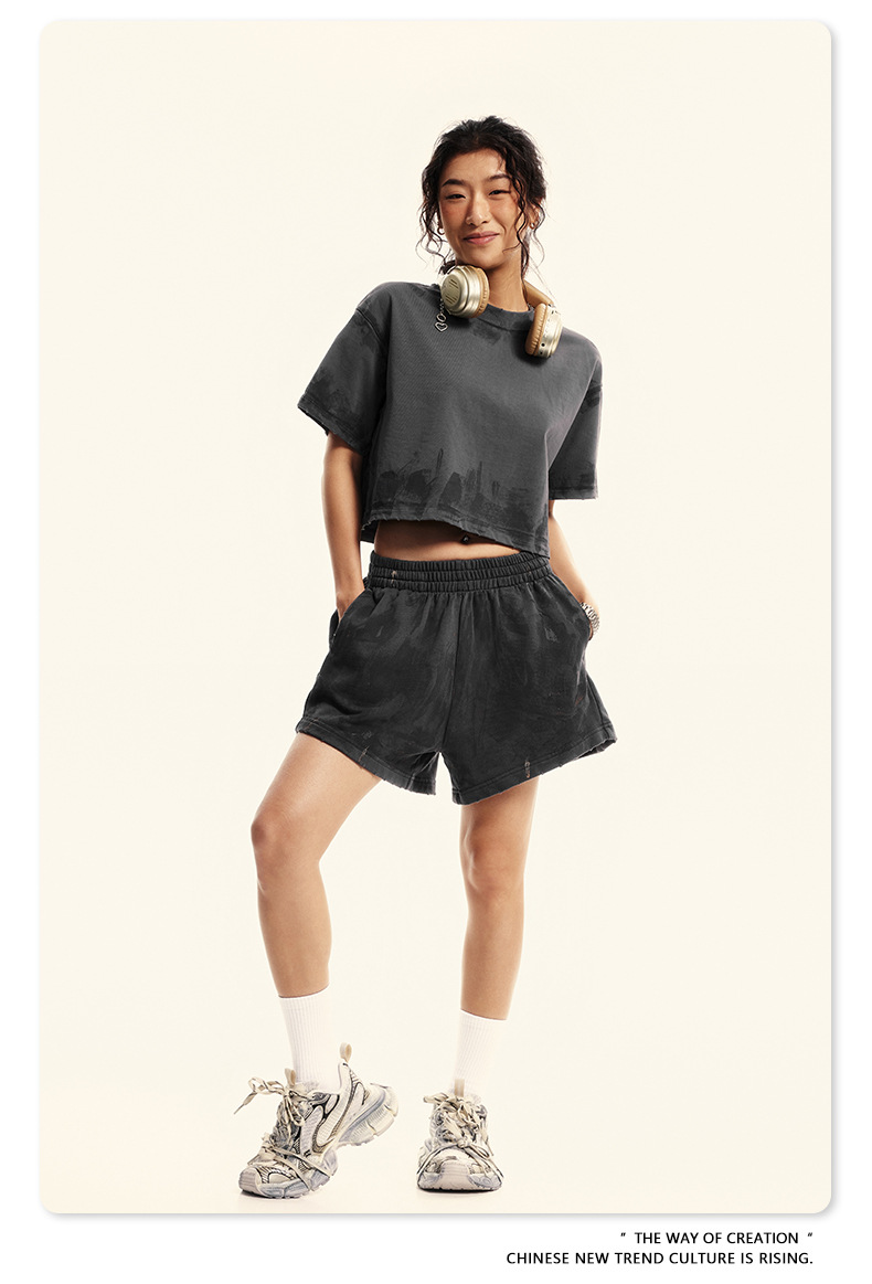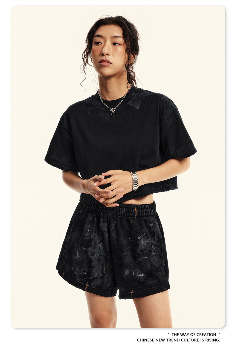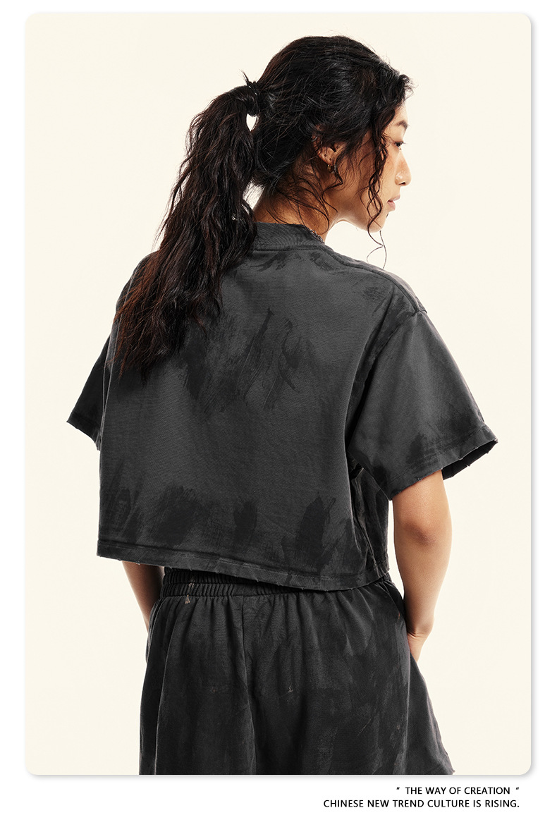BE Women's Wear 24 Spring and Summer Paris Factory Mud Dye Women's T-shirt 305G European and American Fashion Brand Fitness Short Women's Top
