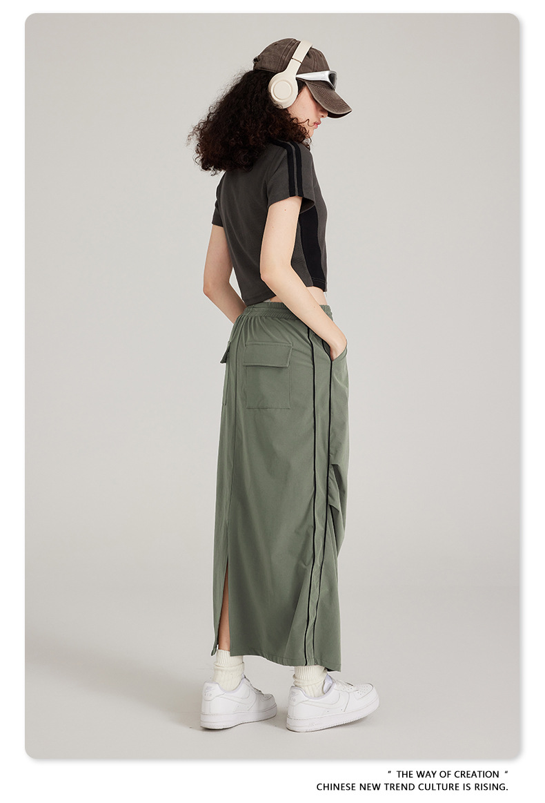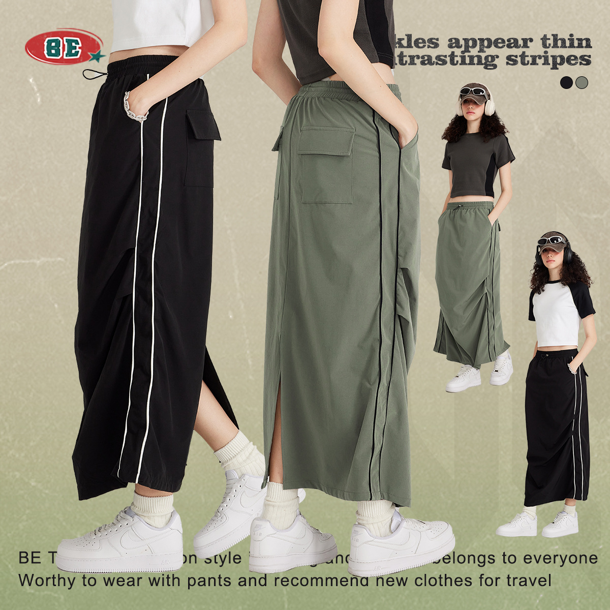 BE Women's Wear | Spring/Summer 2024 American Pleated Split Woven Long Skirt European and American Spice Girls Retro Skirt Women