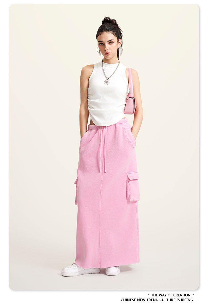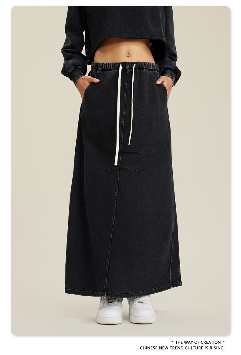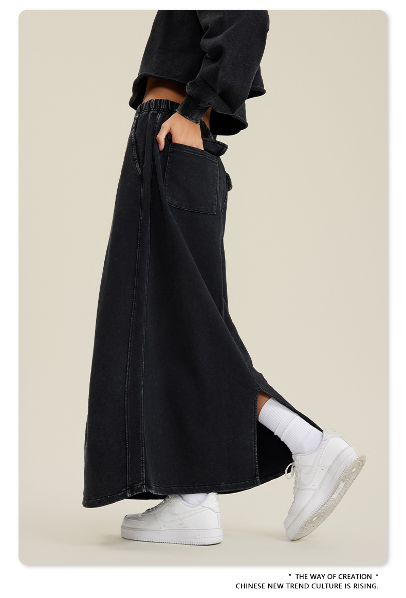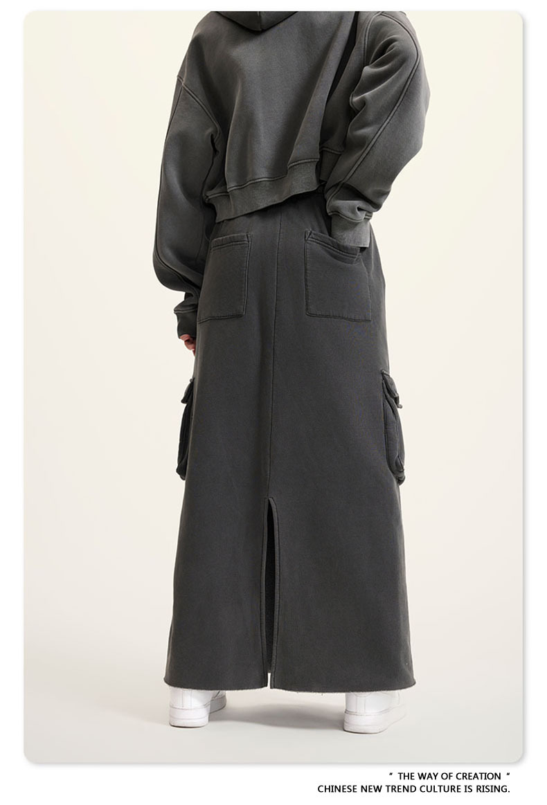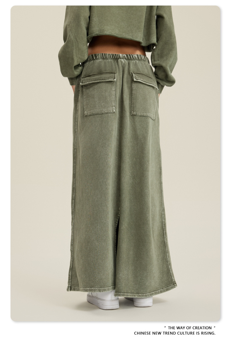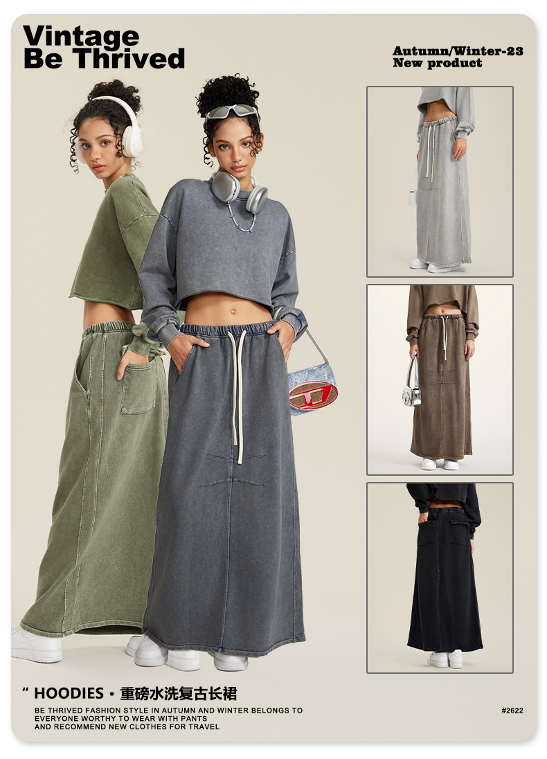 BE Women's Autumn and Winter Vintage Washed Mid-length Dress fleece-lined Dress Multi-pocket American Style Fashion Brand BM European and American Style A- line Dress for Women