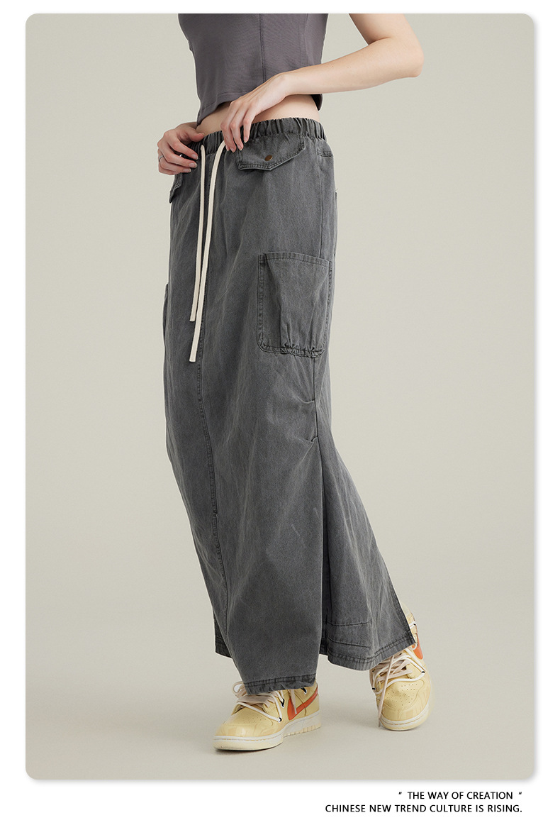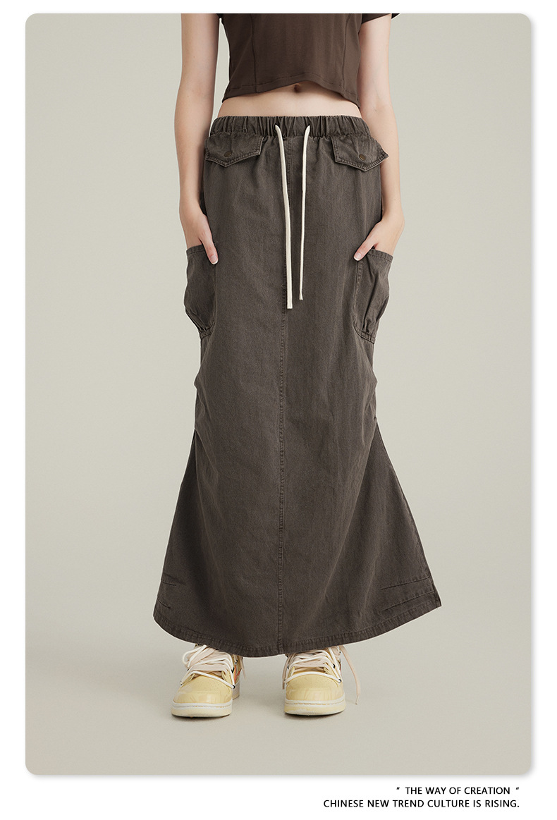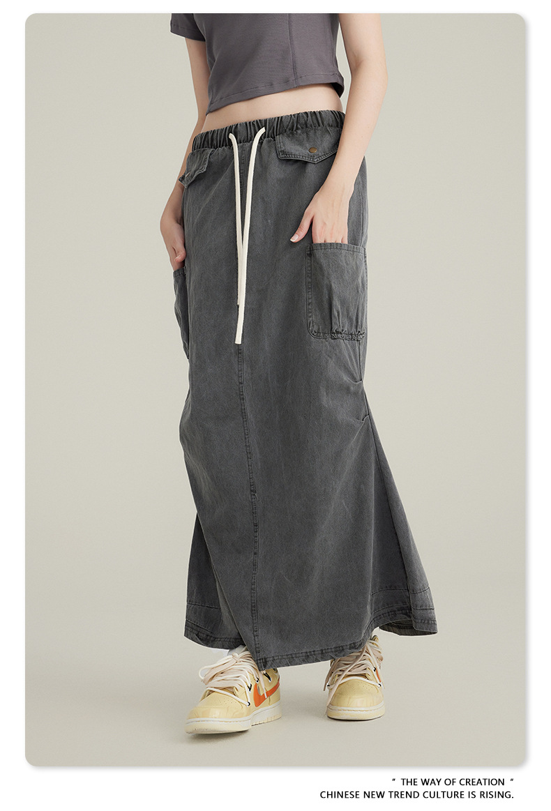 BE Women's 2024 Spring and Summer American Vintage Washed Multi-Bag Workwear Skirt vintage plus size Slight Fat Skirt for Women