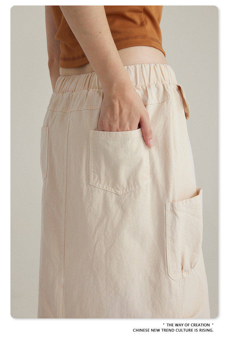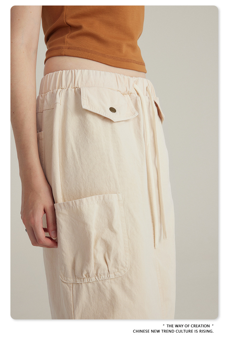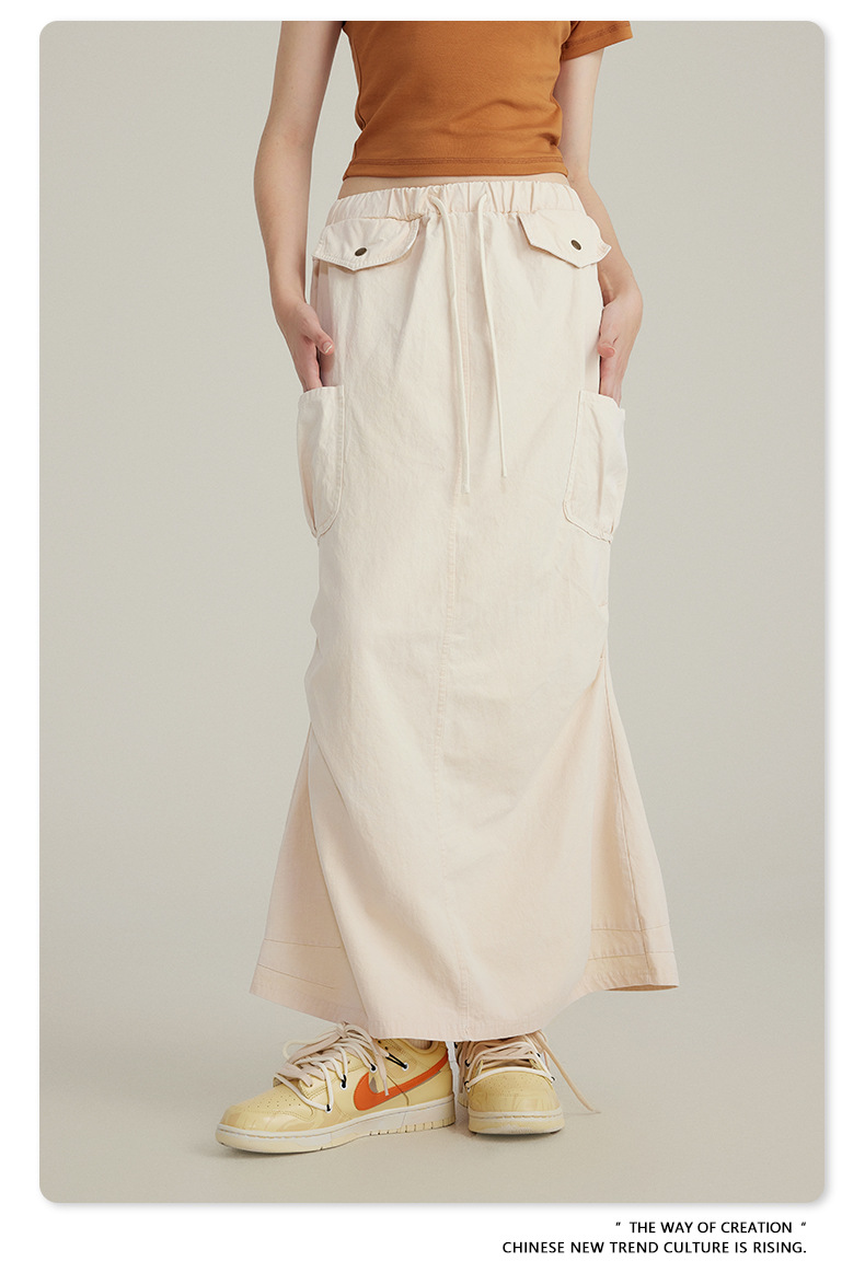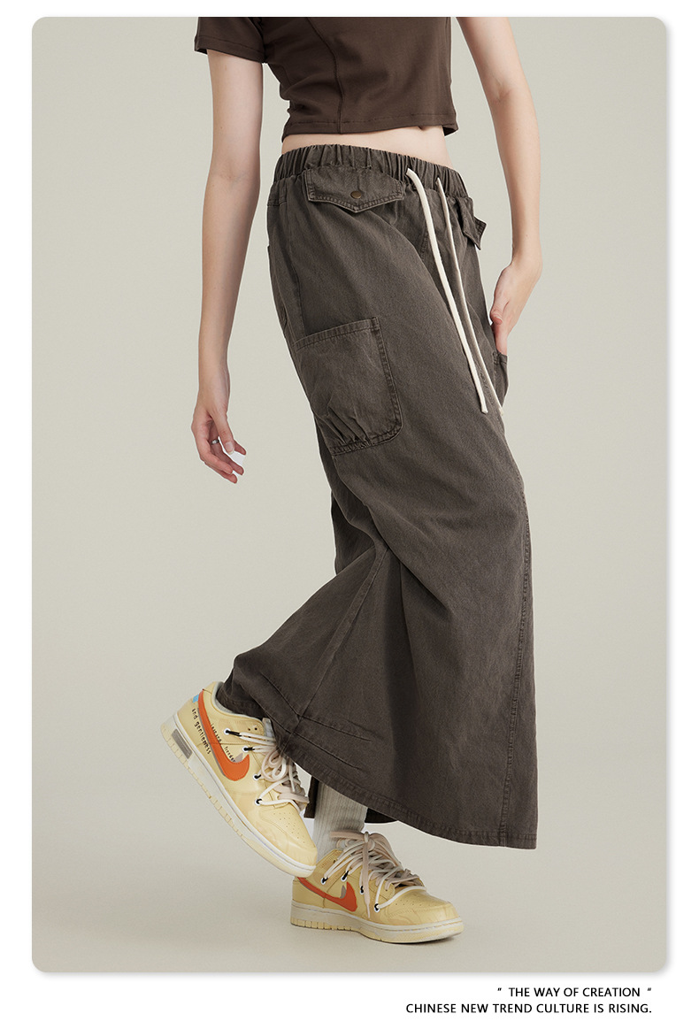 BE Women's 2024 Spring and Summer American Vintage Washed Multi-Bag Workwear Skirt vintage plus size Slight Fat Skirt for Women