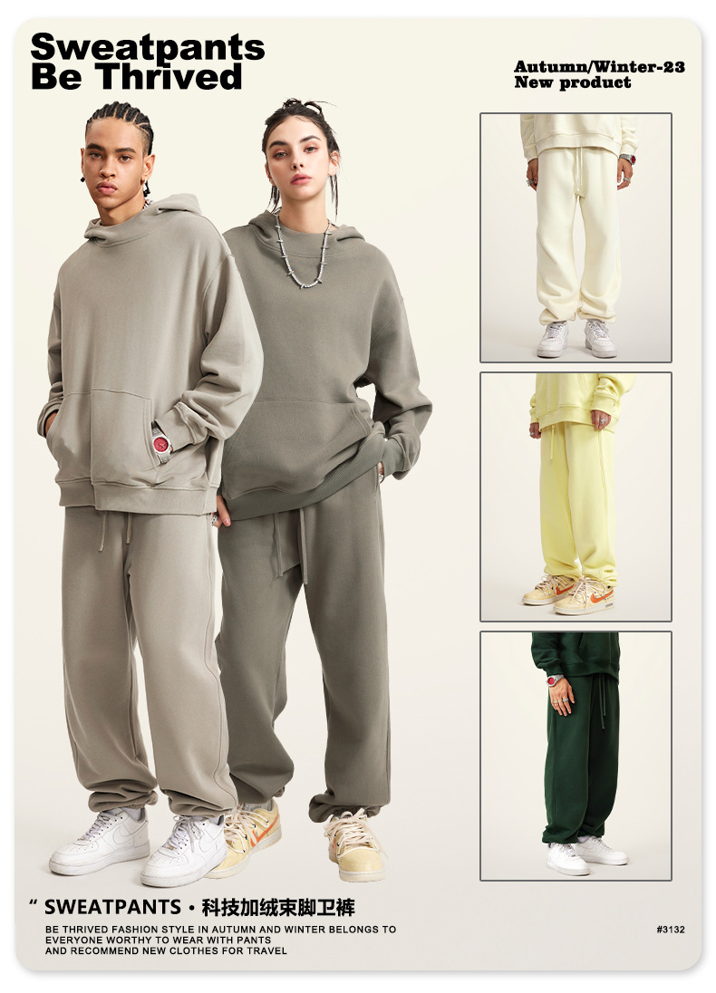 BE Men's Wear 2024 Fall/Winter American Fashion Brand Teenager's Foot-binding Pants Men's Loose Casual fleece-lined Sports Pants Men's