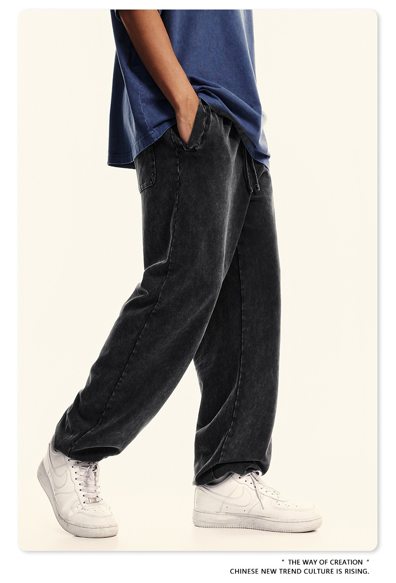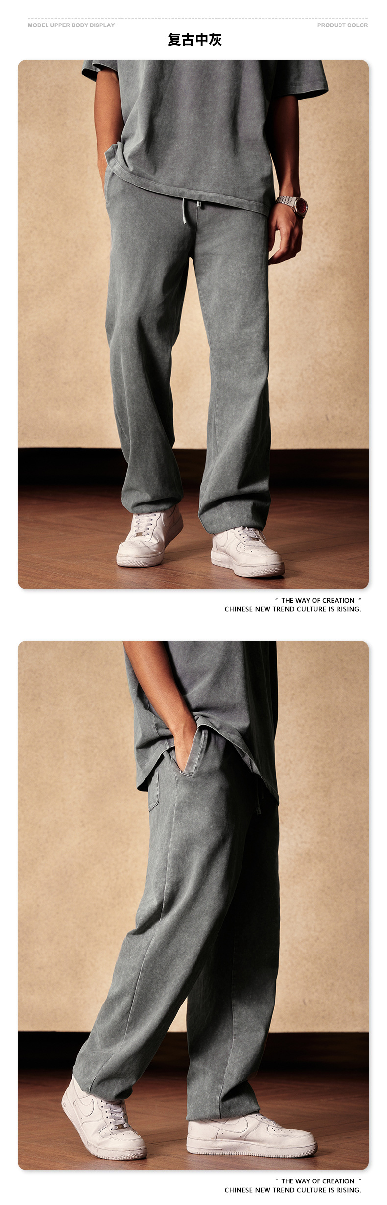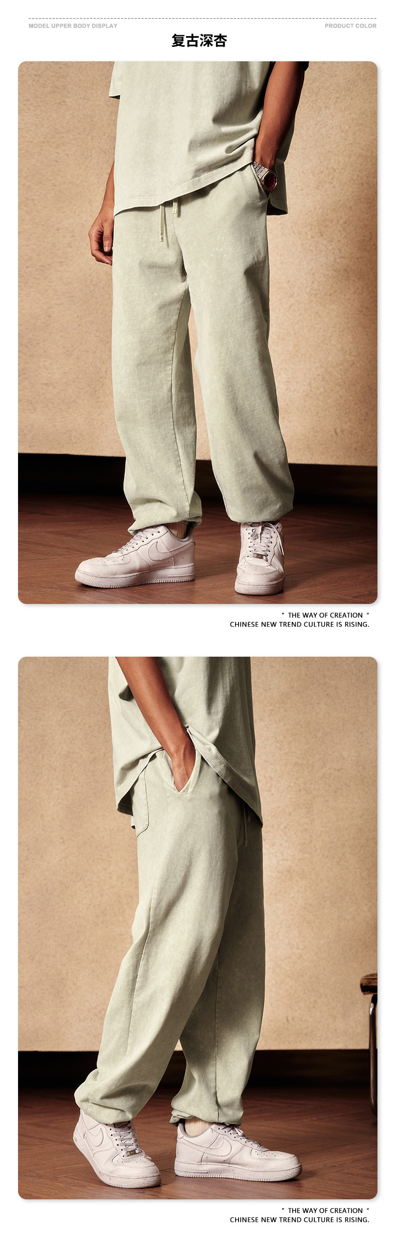 BE Men's 2024 Spring and Summer Thin Fitness Leg Sports Pants Washed Heavy Industry Trendy Brand Loose Casual Pants for Men