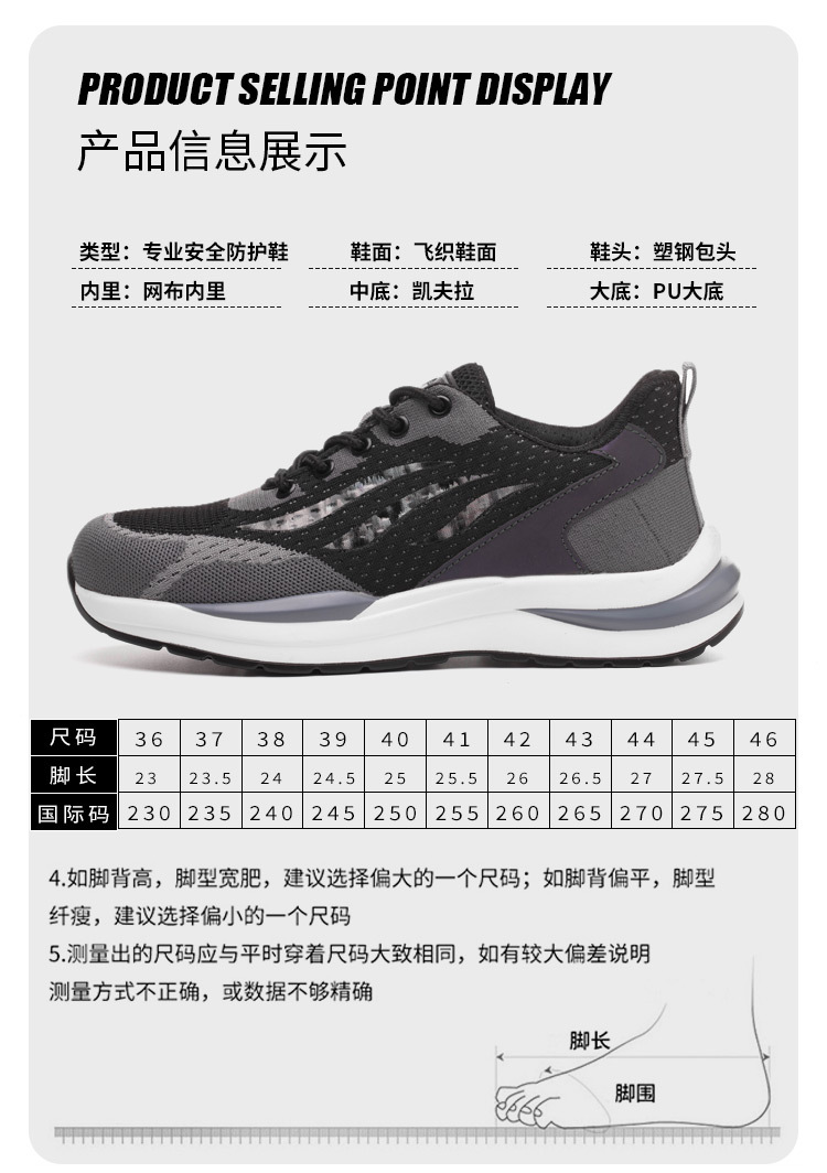 Manufacturers wholesale new labor protection shoes men's breathable anti-smashing anti-puncture wear fashion light safety shoes non-slip safety shoes