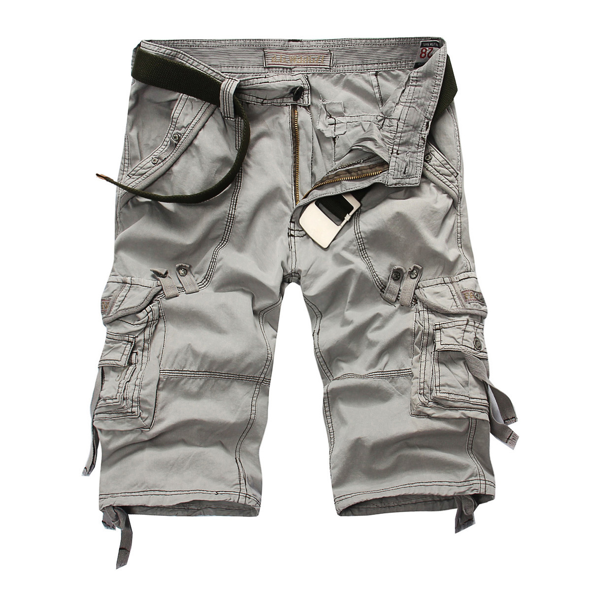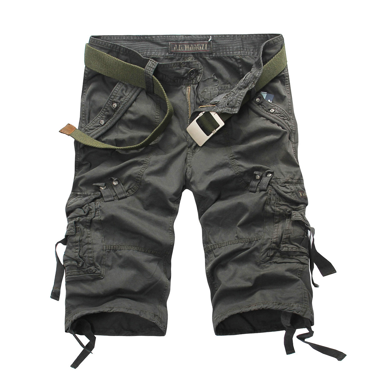 Foreign trade men's capri pants overalls trendy men's solid color washed overalls 7 pants cotton 40 42