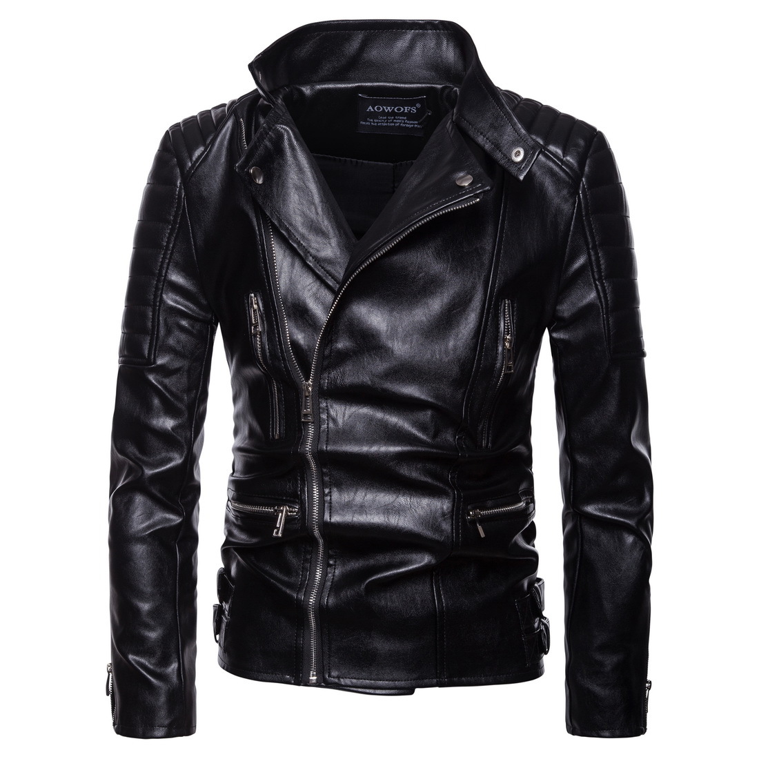 2019 autumn new men's Carrie leather motorcycle lapel fashion leather plus size B030