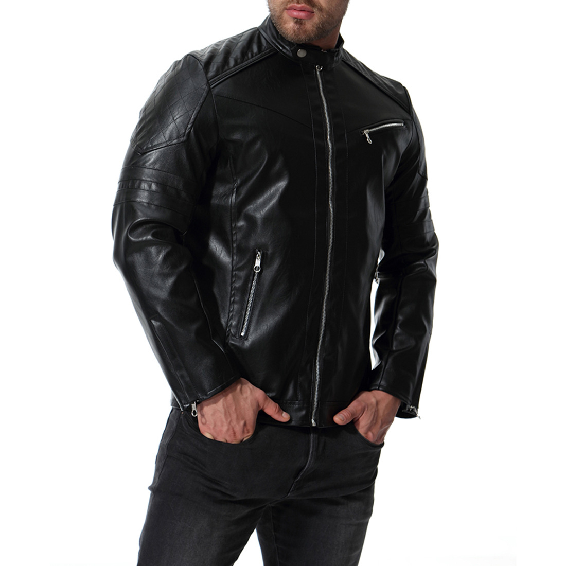 European size autumn new fashion men's washed motorcycle leather European and American fashion stand collar PU leather jacket coat XB045