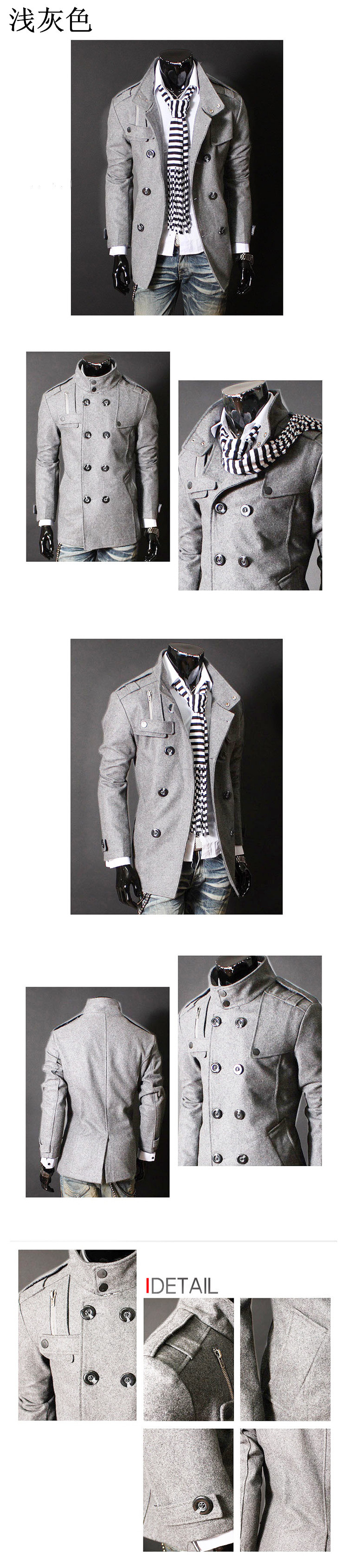 Foreign trade men's cross-border new double-breasted stand collar epaulettes long woolen trench coat plus size 3XL